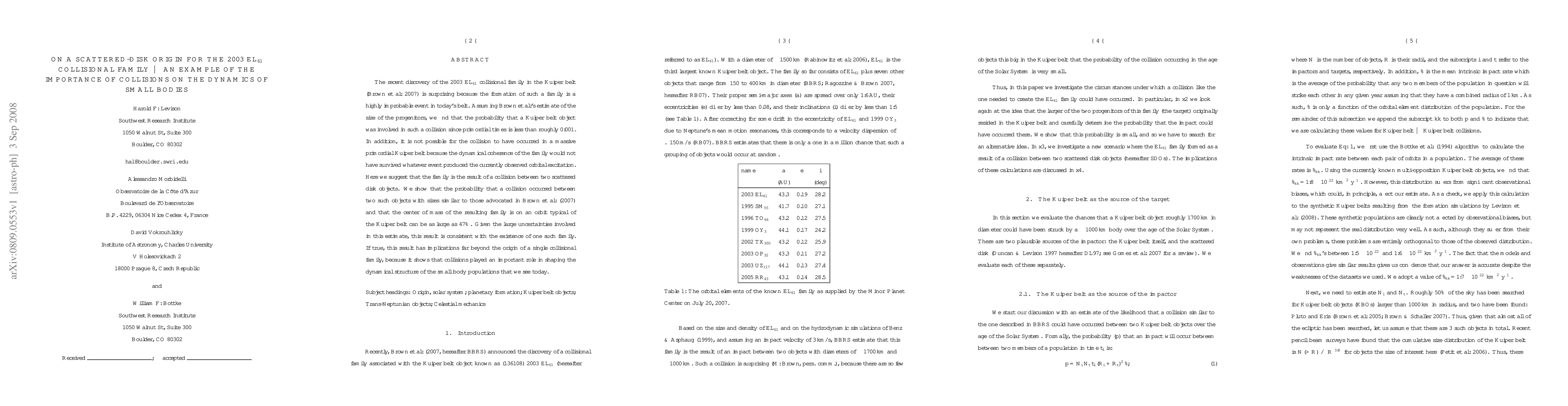 The recent discovery of the 2003EL61 collisional family in the Kuiper belt (Brown et al., 2007) is surprising because the formation of such a family is a highly improbable event in today's belt. Assuming Brown et al.'s estimate of the size of progenitors, we find that the probability that a Kuiper belt object was involved in such a collision since primordial times is less than roughly 0.001. In addition, it is not possible for the collision to have occurred in a massive primordial Kuiper belt because the dynamical coherence of the family would not have survived whatever event produced the currently observed orbital excitation. Here we suggest that the family is the result of a collision between two scattered disk objects. We show that the probability that a collision occurred between two such objects with sizes similar to those advocated in Brown et al. (2007) and that the center of mass of the resulting family is on an orbit typical of the Kuiper belt can be as large as 47%. Given the large uncertainties involved in this estimate, this result is consistent with the existence of one such family. If true, this result has implications far beyond the origin of a single collisional family, because it shows that collisions played an important role in shaping the dynamical structure of the small body populations that we see today.