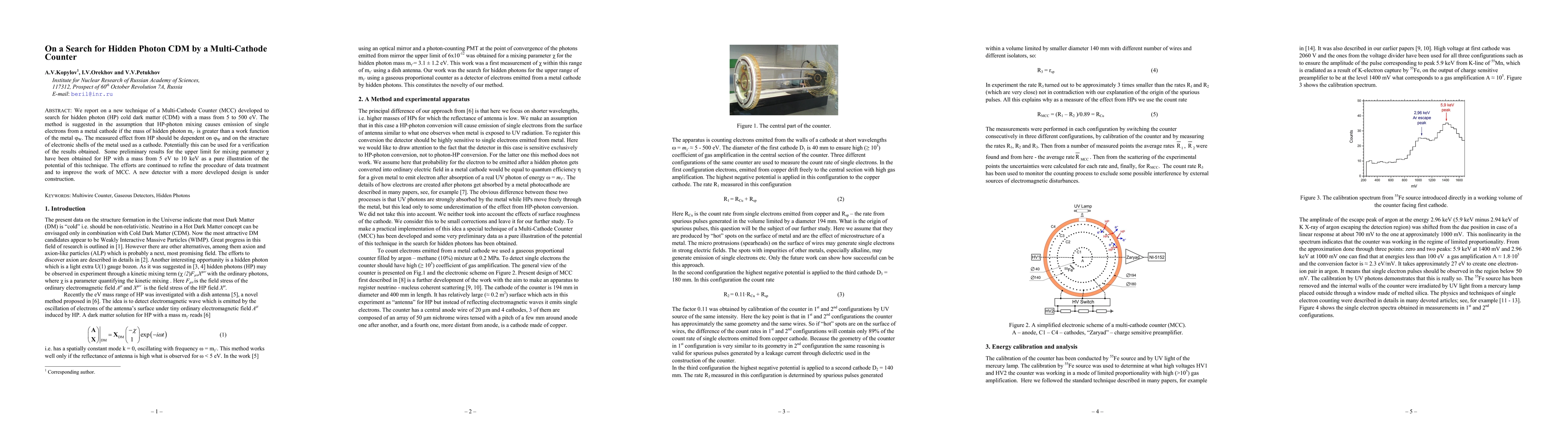 We report on a new technique of a Multi-Cathode Counter (MCC) developed to search for hidden photon (HP) cold dark matter (CDM) with a mass from 5 to 500 eV. The method is suggested in the assumption that HP-photon mixing causes emission of single electrons from a metal cathode if the mass of hidden photon is greater than a work function of the metal. The measured effect from HP should be dependent on work function of the metal and on the structure of electronic shells of the metal used as a cathode. Potentially this can be used for a verification of the results obtained. Some preliminary results for the upper limit for mixing parameter X have been obtained for HP with a mass from 5 eV to 10 keV as a pure illustration of the potential of this technique. The efforts are continued to refine the procedure of data treatment and to improve the work of MCC. A new detector with a more developed design is under construction.