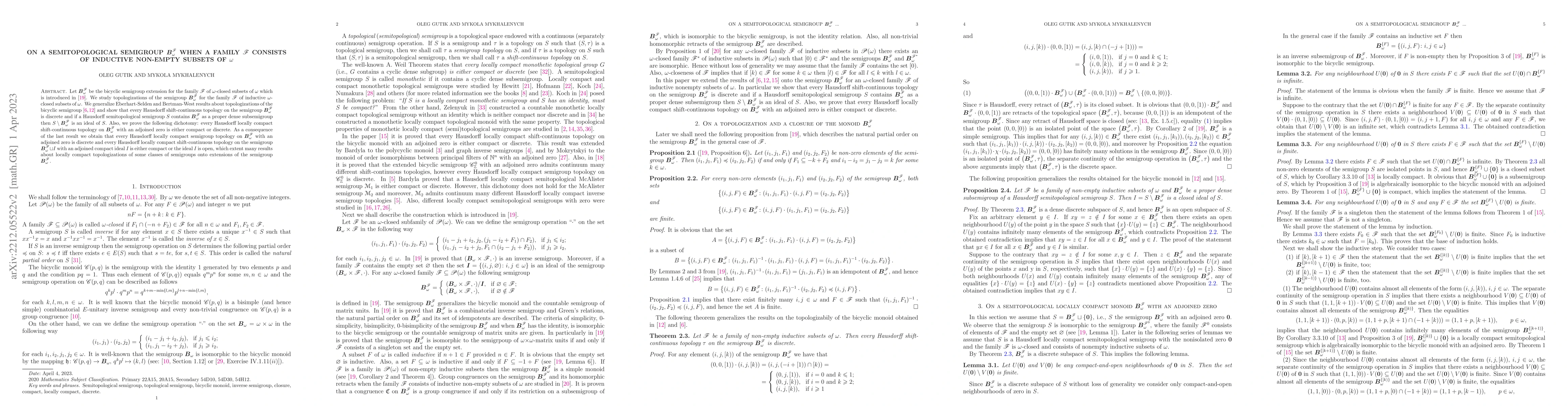Let $\boldsymbol{B}_{\omega}^{\mathscr{F}}$ be the bicyclic semigroup extension for the family $\mathscr{F}$ of ${\omega}$-closed subsets of $\omega$ which is introduced in \cite{Gutik-Mykhalenych=2020}. We study topologizations of the semigroup $\boldsymbol{B}_{\omega}^{\mathscr{F}}$ for the family $\mathscr{F}$ of inductive ${\omega}$-closed subsets of $\omega$. We generalize Eberhart-Selden and Bertman-West results about topologizations of the bicyclic semigroup \cite{Bertman-West-1976, Eberhart-Selden=1969} and show that every Hausdorff shift-continuous topology on the semigroup $\boldsymbol{B}_{\omega}^{\mathscr{F}}$ is discrete and if a Hausdorff semitopological semigroup $S$ contains $\boldsymbol{B}_{\omega}^{\mathscr{F}}$ as a proper dense subsemigroup then $S\setminus\boldsymbol{B}_{\omega}^{\mathscr{F}}$ is an ideal of $S$. Also, we prove the following dichotomy: every Hausdorff locally compact shift-continuous topology on $\boldsymbol{B}_{\omega}^{\mathscr{F}}$ with an adjoined zero is either compact or discrete. As a consequence of the last result we obtain that every Hausdorff locally compact semigroup topology on $\boldsymbol{B}_{\omega}^{\mathscr{F}}$ with an adjoined zero is discrete and every Hausdorff locally compact shift-continuous topology on the semigroup $\boldsymbol{B}_{\omega}^{\mathscr{F}}\sqcup I$ with an adjoined compact ideal $I$ is either compact or the ideal $I$ is open, which extent many results about locally compact topologizations of some classes of semigroups onto extensions of the semigroup $\boldsymbol{B}_{\omega}^{\mathscr{F}}$.