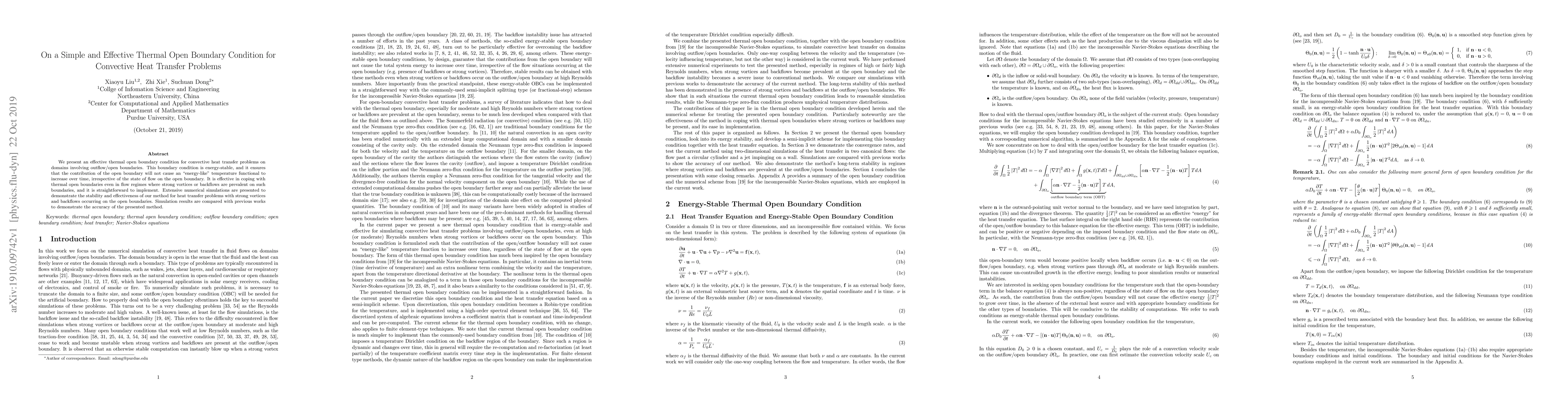 This paper introduces a simple yet effective thermal open boundary condition for convective heat transfer problems, ensuring energy stability and accurate results even in the presence of strong vortices or backflows. Numerical simulations confirm its effectiveness and stability, outperforming previous methods.