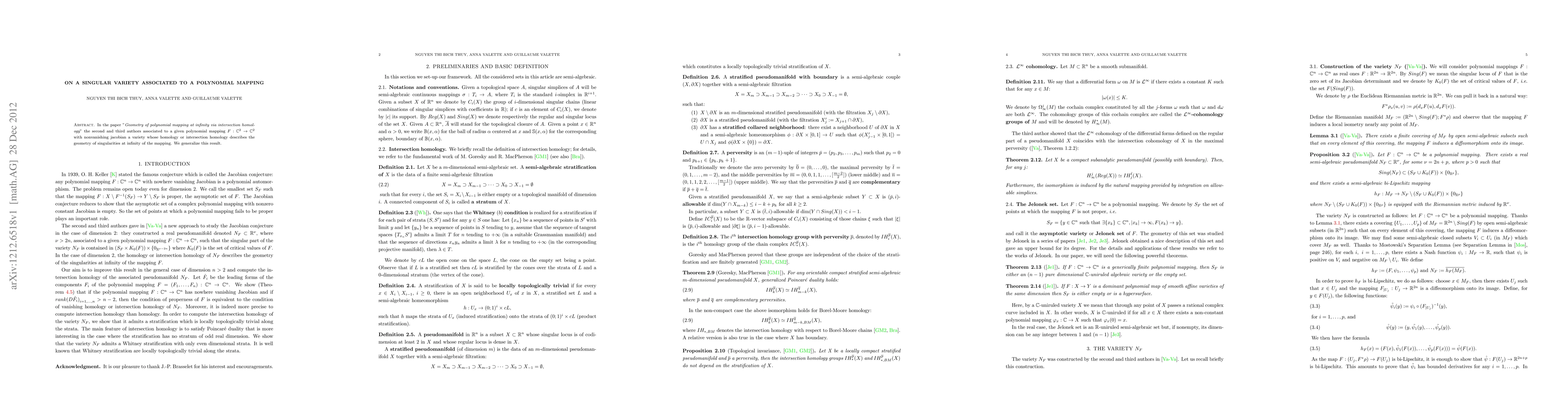 A study generalizes a previous result on a polynomial mapping's geometry at infinity, focusing on the intersection homology of a singular variety associated with the mapping.
