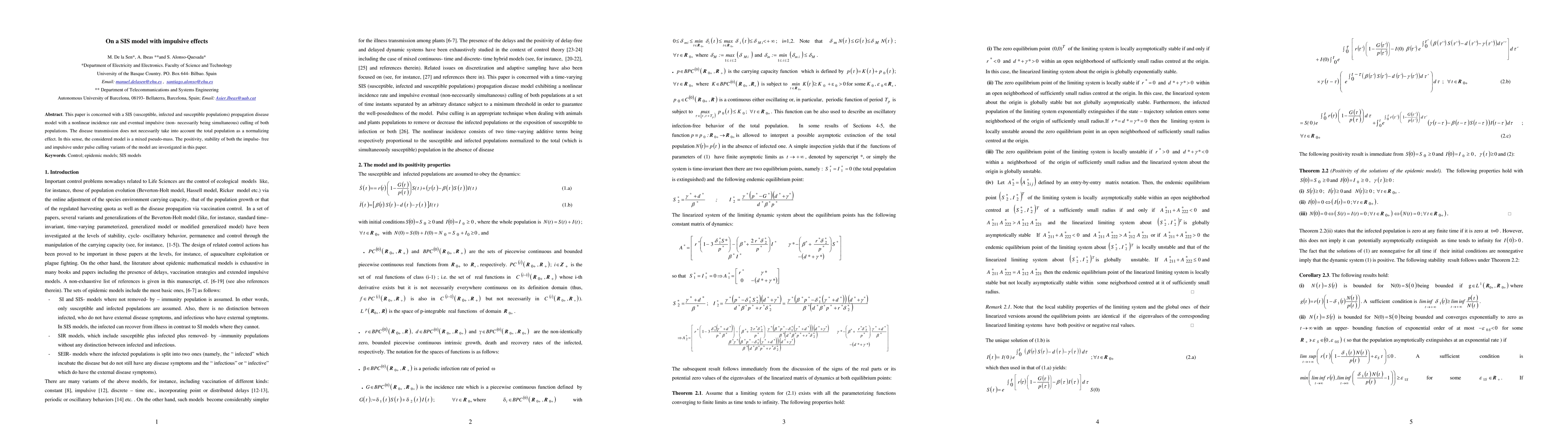This paper is concerned with a SIS (susceptible, infected and susceptible populations) propagation disease model with a nonlinear incidence rate and eventual impulsive (non- necessarily being simultaneous) culling of both populations. The disease transmission does not necessarily take into account the total population as a normalizing effect. In this sense, the considered model is a mixed pseudo-mass. The positivity, stability of both the impulse- free and impulsive under pulse culling variants of the model are investigated in this paper.