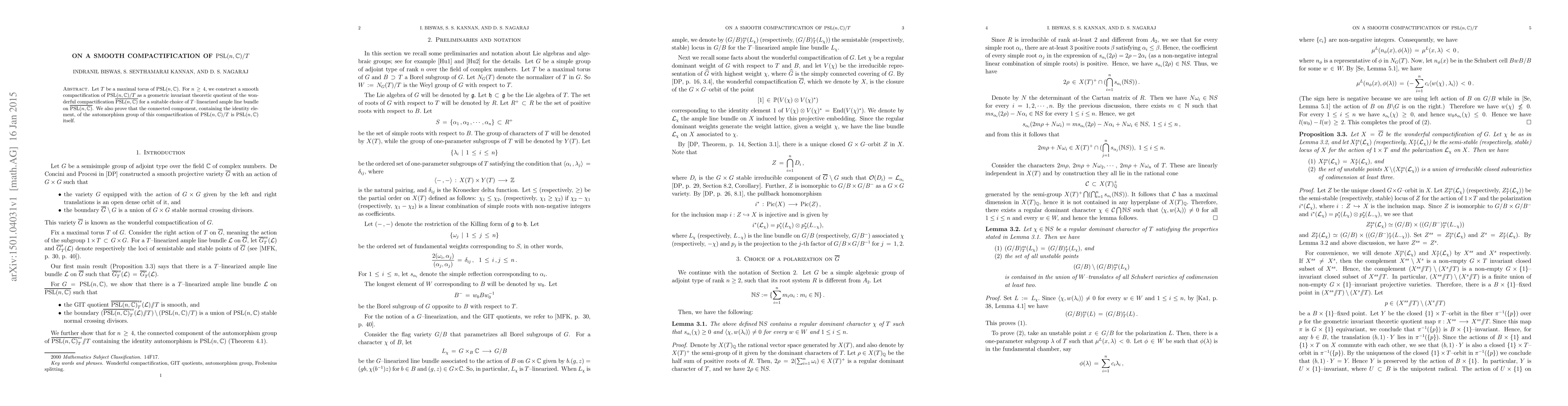 This paper constructs a smooth compactification of ${\rm PSL}(n, \mathbb C)/T$ for $n \geq 4$ using geometric invariant theory, and proves that the identity component of the automorphism group of this compactification is ${\rm PSL}(n, \mathbb C)$.