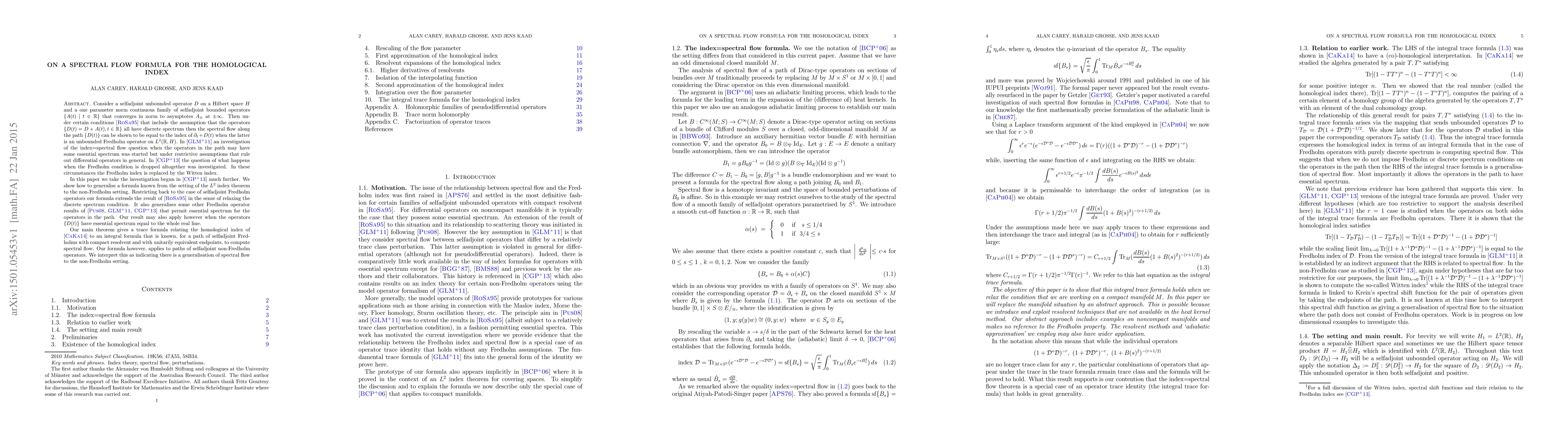 Consider a selfadjoint unbounded operator D on a Hilbert space H and a one parameter norm continuous family of selfadjoint bounded operators {A(t)} parametrized by the real line. Then under certain conditions \cite{RS95} that include the assumption that the operators {D(t)= D+A(t)} all have discrete spectrum then the spectral flow along the path { D(t)} can be shown to be equal to the index of d/dt+D(t) when the latter is an unbounded Fredholm operator on L^2(R, H). In \cite{GLMST11} an investigation of the index=spectral flow question when the operators in the path may have some essential spectrum was started but under restrictive assumptions that rule out differential operators in general. In \cite{CGPST14a} the question of what happens when the Fredholm condition is dropped altogether was investigated. In these circumstances the Fredholm index is replaced by the Witten index. In this paper we take the investigation begun in \cite{CGPST14a} much further. We show how to generalise a formula known from the setting of the L^2 index theorem to the non-Fredholm setting. Our main theorem gives a trace formula relating the homological index of \cite{CaKa:TIH} to an integral formula that is known, for a path of selfadjoint Fredholms with compact resolvent and with unitarily equivalent endpoints, to compute spectral flow. Our formula however, applies to paths of selfadjoint non-Fredholm operators. We interpret this as indicating there is a generalisation of spectral flow to the non-Fredholm setting.