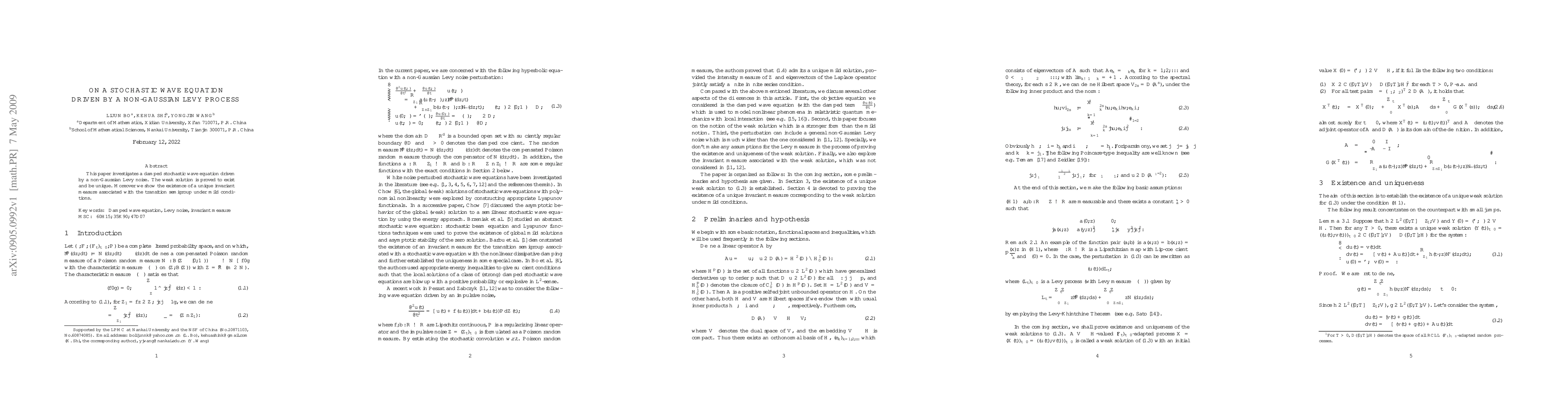 This paper investigates a damped stochastic wave equation driven by a non-Gaussian Levy noise. The weak solution is proved to exist and be unique. Moreover we show the existence of a unique invariant measure associated with the transition semigroup under mild conditions.