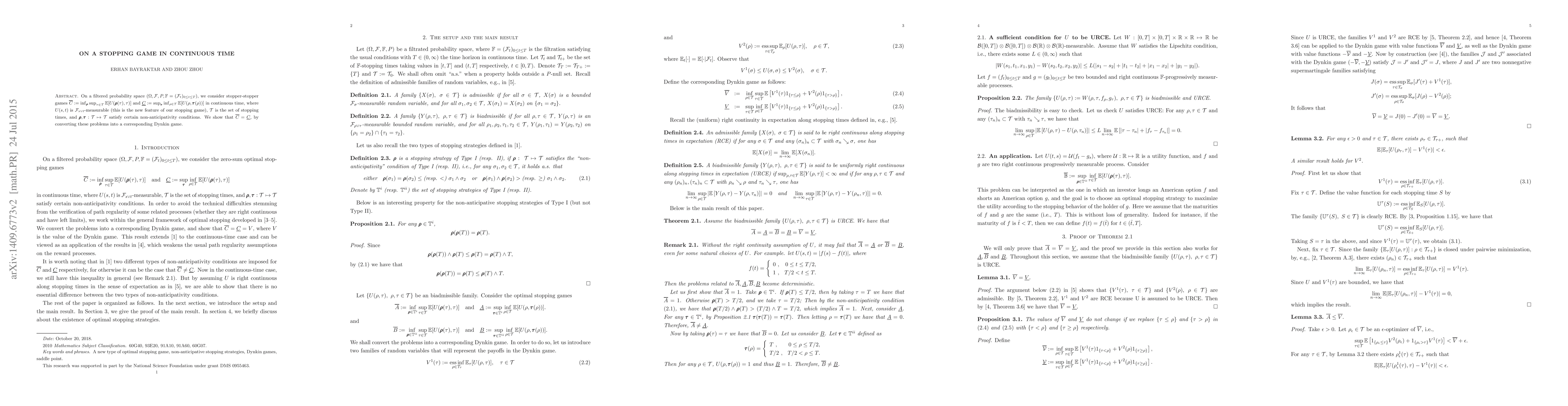 This paper explores a zero-sum continuous time stopping game where the payoff depends on the maximum of the two players' stopping times, differing from traditional Dynkin games where the minimum stopping time determines the outcome. The study aims to analyze optimal strategies and the game's equilibrium.