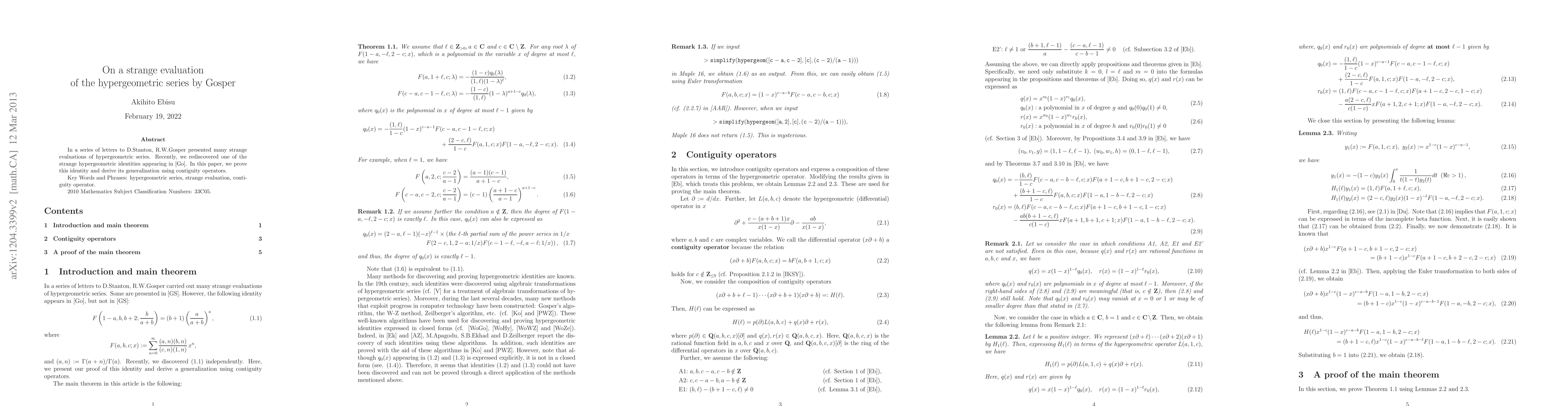 This paper revisits and proves a peculiar hypergeometric series evaluation discovered by R.W. Gosper. Utilizing contiguity operators, the authors not only validate Gosper's finding but also generalize it, contributing to the understanding of such unusual identities in hypergeometric series.