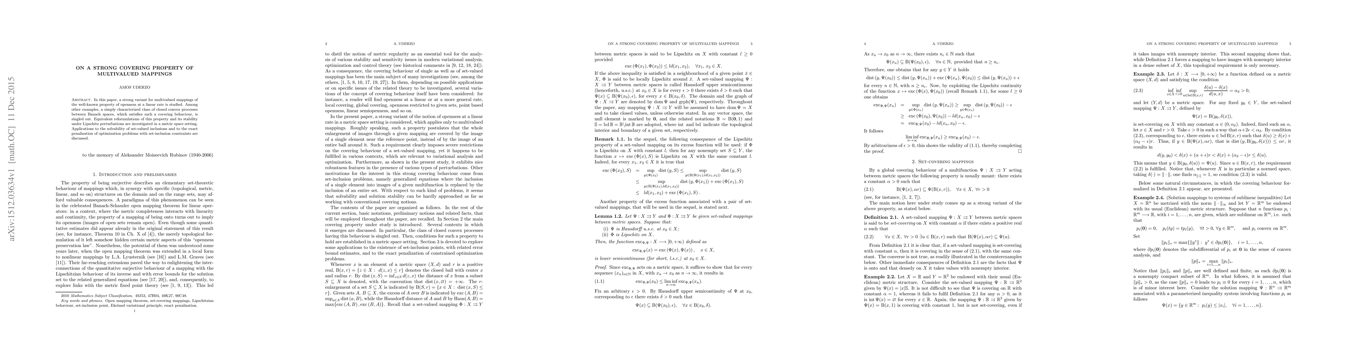The paper introduces and analyzes a strong covering property for multivalued mappings, providing reformulations, stability results, and applications to set-valued inclusions and optimization problems.