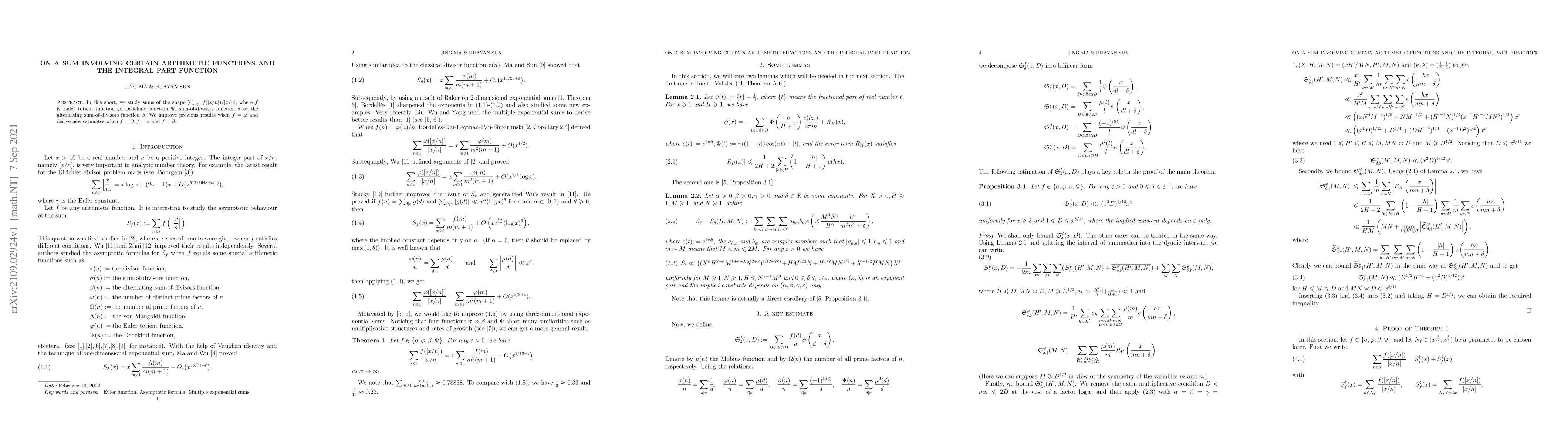 In this short, we study sums of the shape $\sum_{n\leqslant x}{f([x/n])}/{[x/n]},$ where $f$ is Euler totient function $\varphi$, Dedekind function $\Psi$, sum-of-divisors function $\sigma$ or the alternating sum-of-divisors function $\beta.$ We improve previous results when $f=\varphi$ and derive new estimates when $f=\Psi, f=\sigma$ and $f=\beta.$