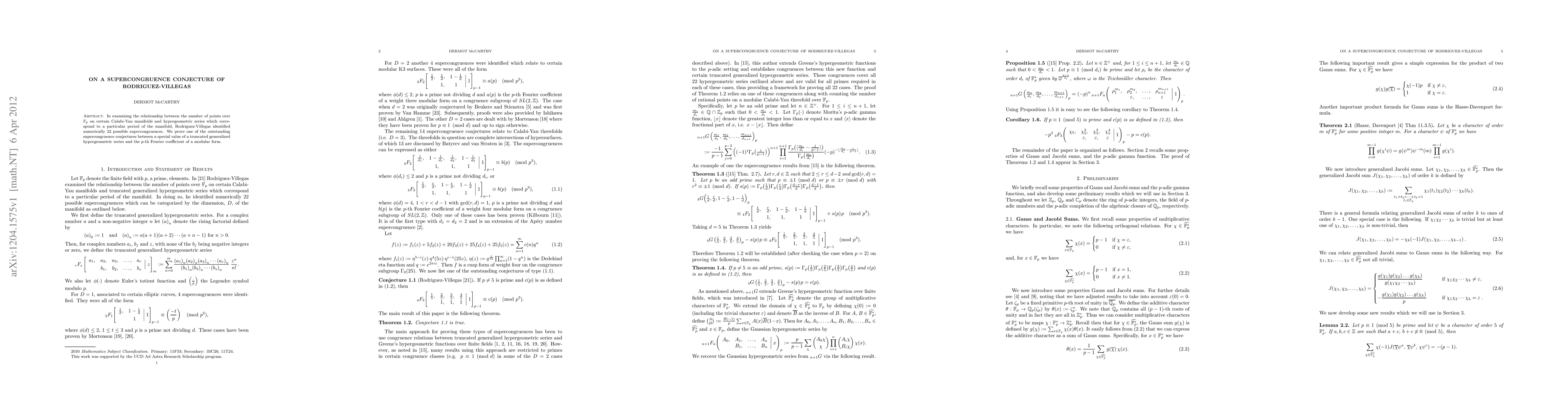This paper proves one of 22 supercongruence conjectures related to Calabi-Yau manifolds and modular forms, connecting a hypergeometric series to the p-th Fourier coefficient.