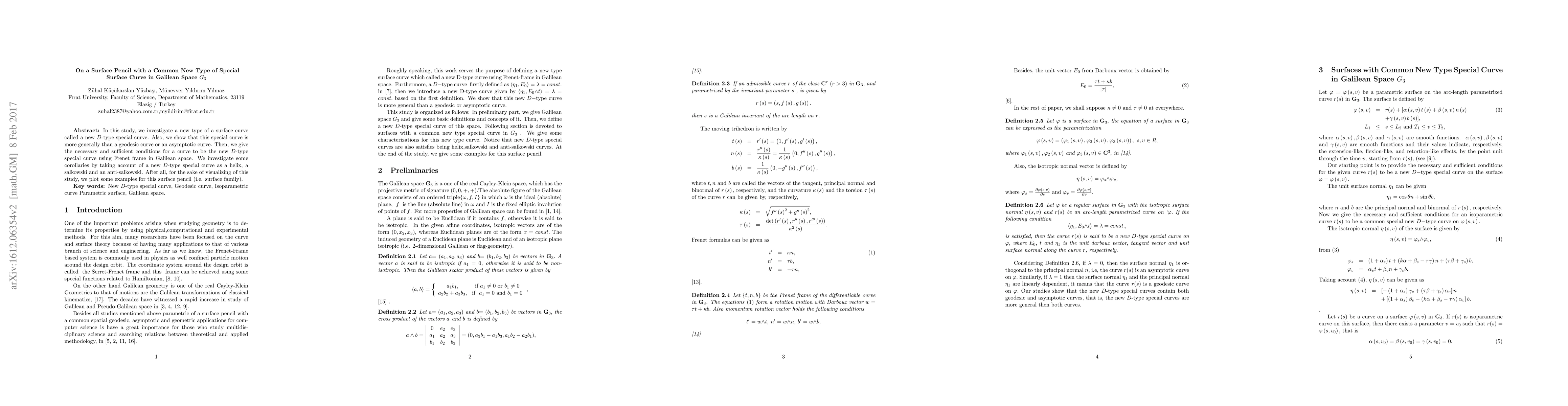 In this study, we investigate a new type of a surface curve called a new D-type special curve. Also, we show that this special curve is more generally than a geodesic curve or an asymptotic curve. Then, we give the necessary and sufficient conditions for a curve to be the new D-type special curve using Frenet frame in Galilean space. We investigate some corollaries by taking account of a new D-type special curve as a helix, a salkowski and an anti-salkowski. After all, for the sake of visualizing of this study, we plot some examples for this surface pencil (i.e. surface family).
