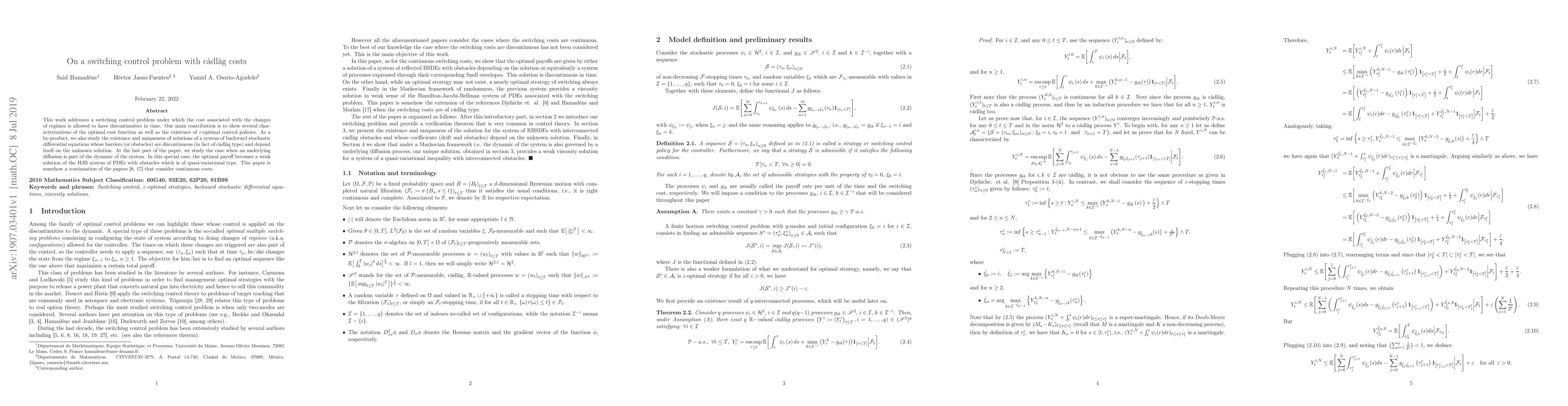 This research paper addresses a switching control problem with c\