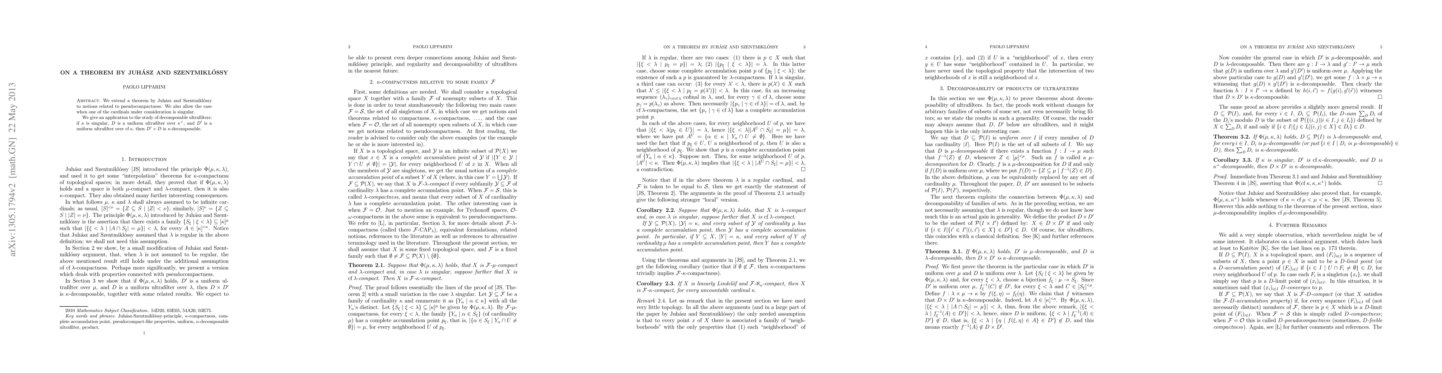 This paper extends a theorem by Juhász and Szentmiklóssy to include pseudocompactness and singular cardinals. It applies the extended theorem to demonstrate that if κ is singular, D is a uniform ultrafilter over κ+, and D' is a uniform ultrafilter over cf κ, then D' × D is κ-decomposable.