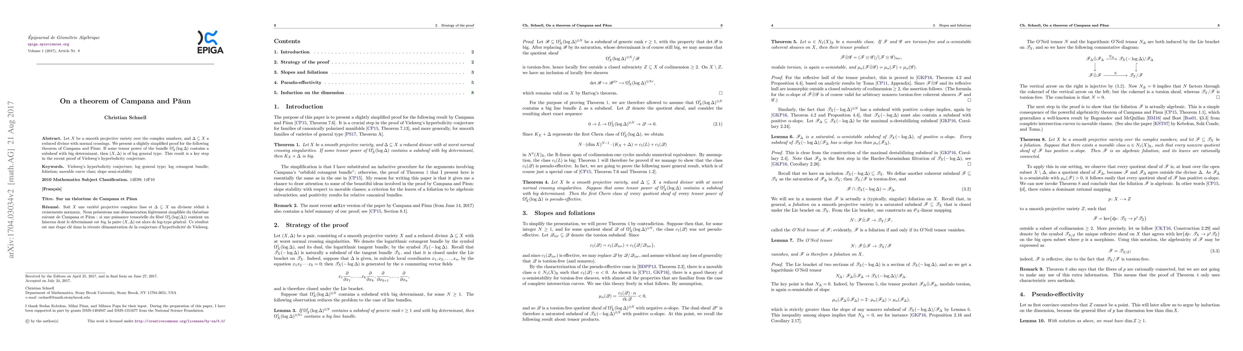 Let $X$ be a smooth projective variety over the complex numbers, and $\Delta \subseteq X$ a reduced divisor with normal crossings. We present a slightly simplified proof for the following theorem of Campana and P\u{a}un: If some tensor power of the bundle $\Omega_X^1(\log \Delta)$ contains a subsheaf with big determinant, then $(X, \Delta)$ is of log general type. This result is a key step in the recent proof of Viehweg's hyperbolicity conjecture.