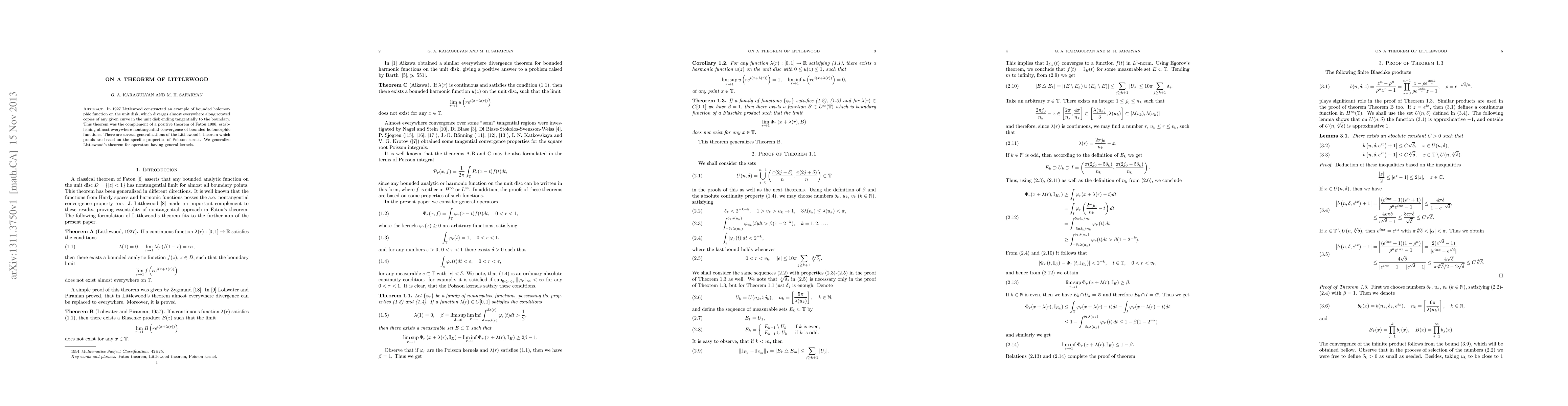 This paper generalizes Littlewood's theorem on almost everywhere nontangential convergence of bounded holomorphic functions to operators with general kernels, expanding its applicability and insights.