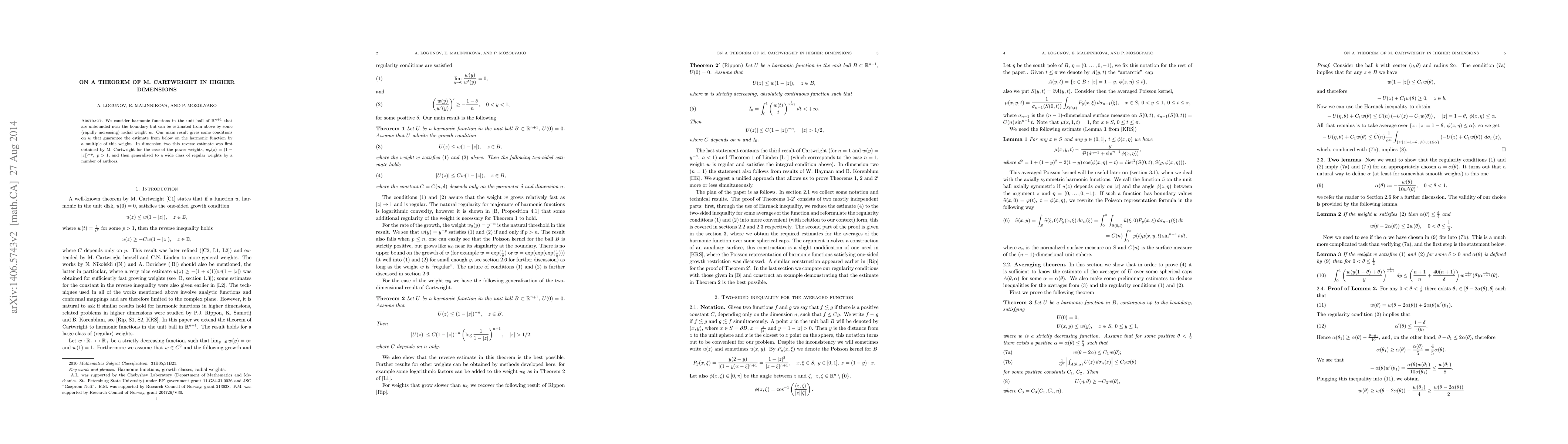 We consider harmonic functions in the unit ball of $\mathbb{R}^{n+1}$ that are unbounded near the boundary but can be estimated from above by some (rapidly increasing) radial weight $w$. Our main result gives some conditions on $w$ that guarantee the estimate from below on the harmonic function by a multiple of this weight. In dimension two this reverse estimate was first obtained by M. Cartwright for the case of the power weights, $w_p(z)=(1-|z|)^{-p}$ for $p>1$, and then generalized to a wide class of regular weights by a number of authors.