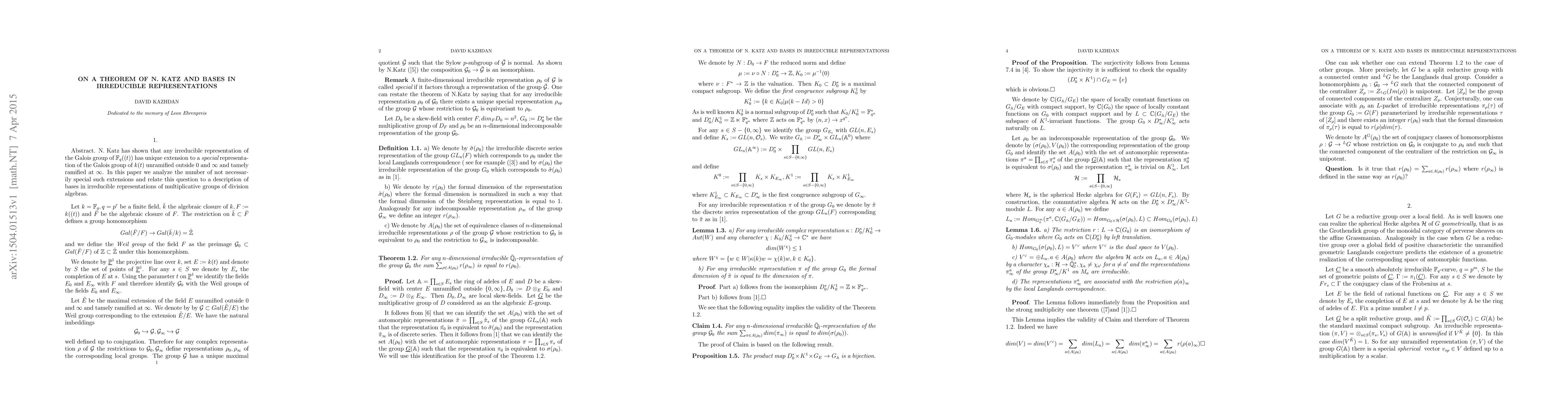 N. Katz has shown that any irreducible representation of the Galois group of F_q((t)) has unique extension to a special representation of the Galois group of k(t) unramified outside 0 and infinity and tamely ramified at infinity. In this paper we analyze the number of not necessarily special such extensions and relate this question to a description of bases in irreducible representations of multiplicative groups of division algebras.