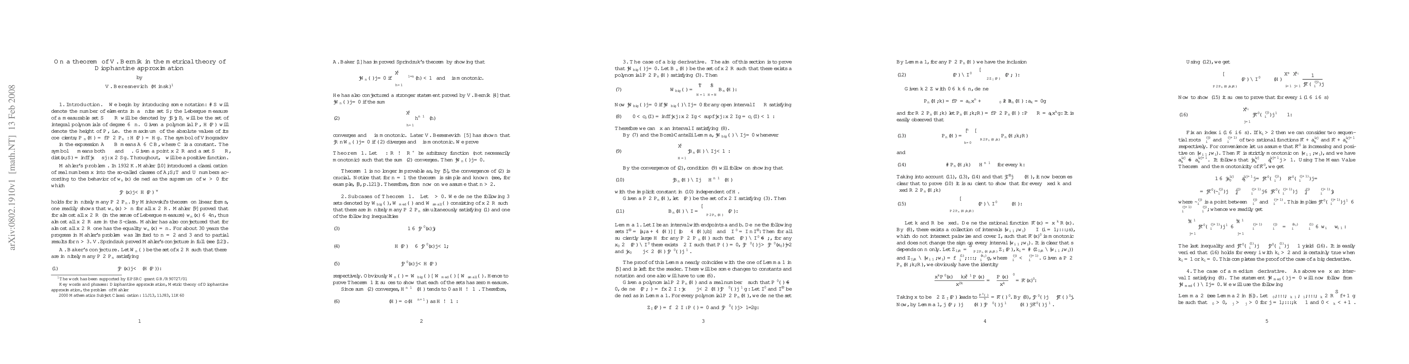 The paper removes the monotonicity assumption in Bernik's theorem, providing a more general convergence Khintchine-type theorem for Diophantine approximation by polynomials.