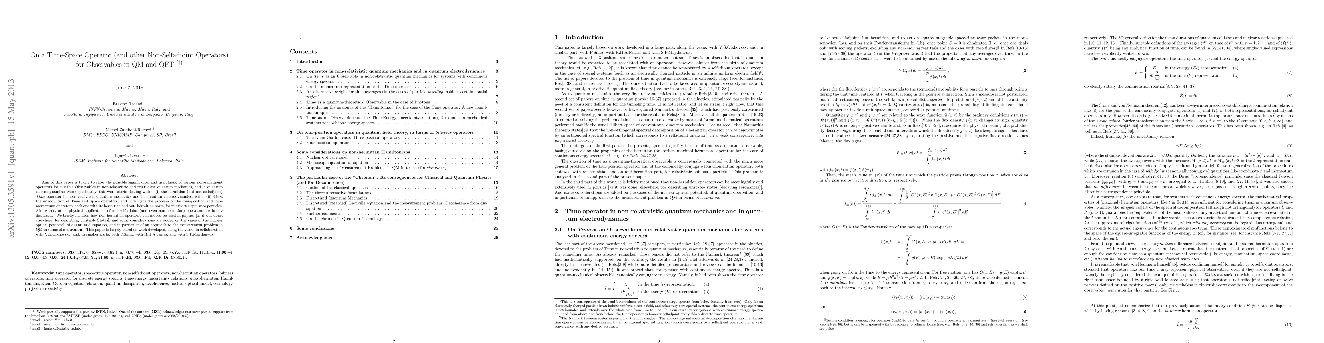 Aim of this paper is trying to show the possible significance, and usefulness, of various non-selfadjoint operators for suitable Observables in non-relativistic and relativistic quantum mechanics, and in quantum electrodynamics: More specifically, this work starts dealing with: (i) the hermitian (but not selfadjoint) Time operator in non-relativistic quantum mechanics and in quantum electrodynamics; with (ii) idem, with the introduction of Time and Space operators; and with (iii) the problem of the four-position and four-momentum operators, each one with its hermitian and anti-hermitian parts, for relativistic spin-zero particles. Afterwards, other physical applications of non-selfadjoint (and even non-hermitian) operators are briefly discussed. We mention how non-hermitian operators can indeed be used in physics [as it was done, elsewhere, for describing Unstable States]; and some considerations are added on the cases of the nuclear optical potential, of quantum dissipation, and in particular of an approach to the measurement problem in QM in terms of a "chronon". [This chapter is largely based on work developed, along the years, in collaboration with V.S.Olkhovsky, and, in smaller parts, with P.Smrz, with R.H.A.Farias, and with S.P.Maydanyuk]. PACS numbers: 03.65.Ta; 03.65.-w; 03.65.Pm; 03.70.+k; 03.65.Xp; 03.65.Yz; 11.10.St; 11.10.-z; 11.90.+t; 02.00.00; 03.00.00; 24.10.Ht; 03.65.Yz; 21.60.-u; 11.10.Ef; 03.65.Fd; 02.40.Dr; 98.80.Jk. Keywords: time operator, space-time operator, non-selfadjoint operators, non-hermitian operators, bilinear operators, time operator for discrete energy spectra, time-energy uncertainty relations, Klein-Gordon equation, chronon, quantum dissipation, decoherence, nuclear optical model, cosmology, projective relativity.
