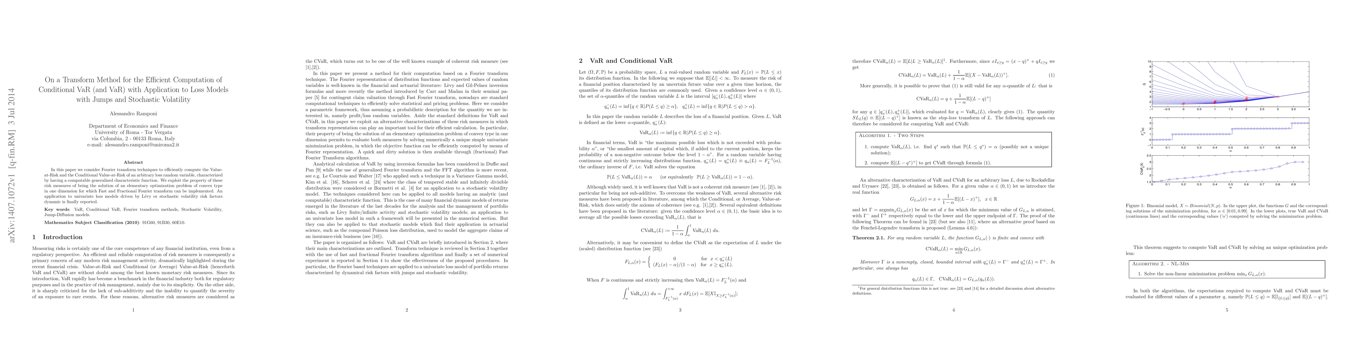 In this paper we consider Fourier transform techniques to efficiently compute the Value-at-Risk and the Conditional Value-at-Risk of an arbitrary loss random variable, characterized by having a computable generalized characteristic function. We exploit the property of these risk measures of being the solution of an elementary optimization problem of convex type in one dimension for which Fast and Fractional Fourier transform can be implemented. An application to univariate loss models driven by L\'{e}vy or stochastic volatility risk factors dynamic is finally reported.