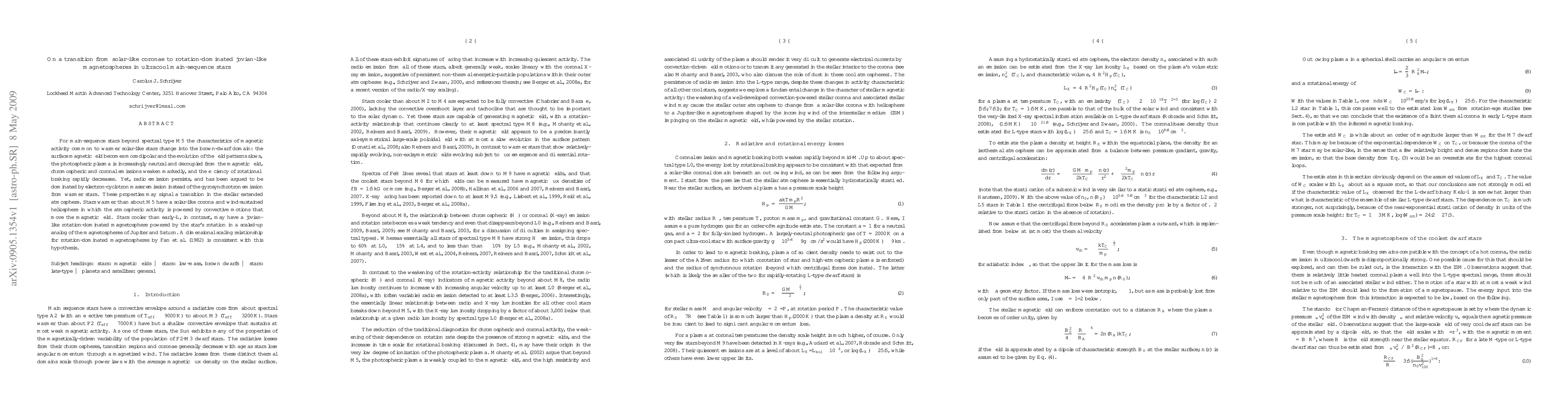For main-sequence stars beyond spectral type M5 the characteristics of magnetic activity common to warmer solar-like stars change into the brown-dwarf domain: the surface magnetic field becomes more dipolar and the evolution of the field patterns slows, the photospheric plasma is increasingly neutral and decoupled from the magnetic field, chromospheric and coronal emissions weaken markedly, and the efficiency of rotational braking rapidly decreases. Yet, radio emission persists, and has been argued to be dominated by electron-cyclotron maser emission instead of the gyrosynchrotron emission from warmer stars. These properties may signal a transition in the stellar extended atmosphere. Stars warmer than about M5 have a solar-like corona and wind-sustained heliosphere in which the atmospheric activity is powered by convective motions that move the magnetic field. Stars cooler than early-L, in contrast, may have a jovian-like rotation-dominated magnetosphere powered by the star's rotation in a scaled-up analog of the magnetospheres of Jupiter and Saturn. A dimensional scaling relationship for rotation-dominated magnetospheres by Fan et al. (1982) is consistent with this hypothesis.