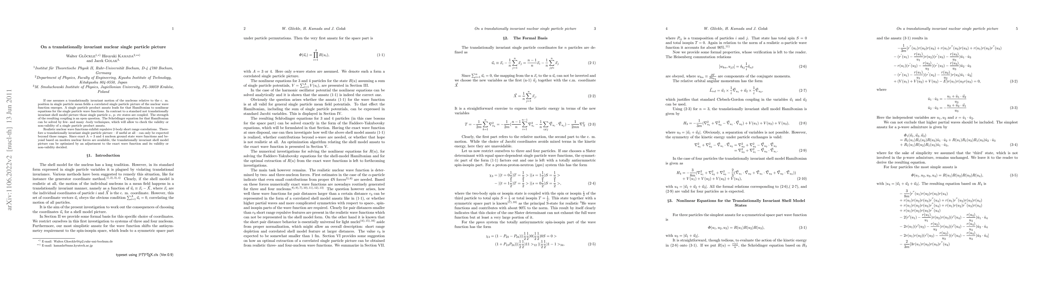 This paper explores a translationally invariant nuclear single particle model where nucleons move relative to the center of mass, leading to a correlated single particle wave function. The study proposes solving the Schrödinger equation using few- and many-body techniques to validate the single particle product ansatz, while acknowledging the challenge of repulsive short-range correlations in realistic nuclear wave functions.