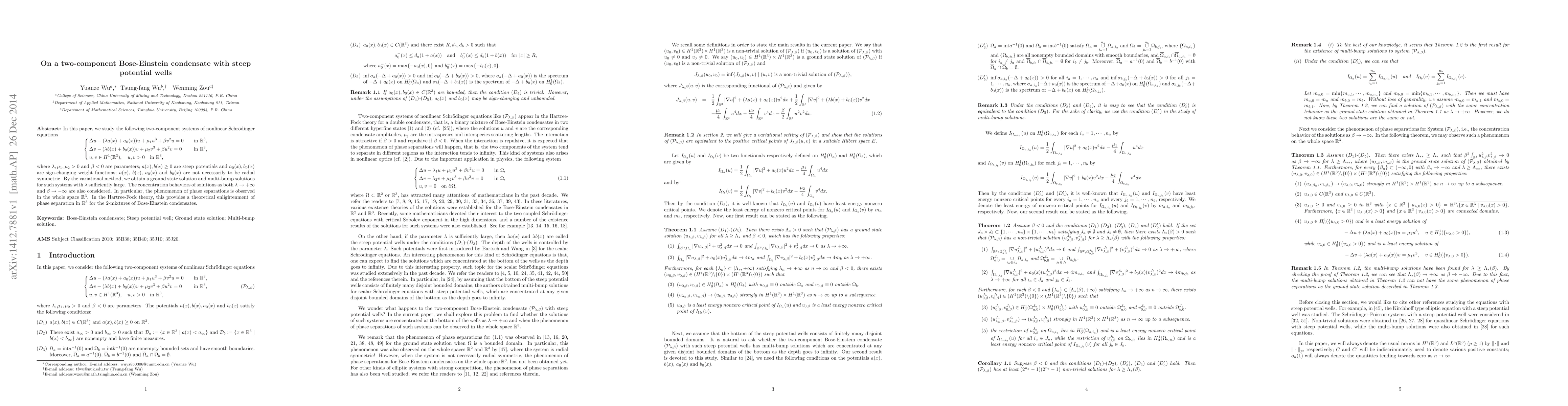 In this paper, we study the following two-component systems of nonlinear Schr\"odinger equations \begin{equation*} \left\{\aligned&\Delta u-(\lambda a(x)+a_0(x))u+\mu_1u^3+\beta v^2u=0\quad&\text{in }\bbr^3,\\ &\Delta v-(\lambda b(x)+b_0(x))v+\mu_2v^3+\beta u^2v=0\quad&\text{in }\bbr^3,\\ &u,v\in\h,\quad u,v>0\quad\text{in }\bbr^3,\endaligned\right. \end{equation*} where $\lambda,\mu_1,\mu_2>0$ and $\beta<0$ are parameters; $a(x), b(x)\geq0$ are steep potentials and $a_0(x),b_0(x)$ are sign-changing weight functions; $a(x)$, $b(x)$, $a_0(x)$ and $b_0(x)$ are not necessarily to be radial symmetric. By the variational method, we obtain a ground state solution and multi-bump solutions for such systems with $\lambda$ sufficiently large. The concentration behaviors of solutions as both $\lambda\to+\infty$ and $\beta\to-\infty$ are also considered. In particular, the phenomenon of phase separations is observed in the whole space $\bbr^3$. In the Hartree-Fock theory, this provides a theoretical enlightenment of phase separation in $\bbr^3$ for the 2-mixtures of Bose-Einstein condensates.