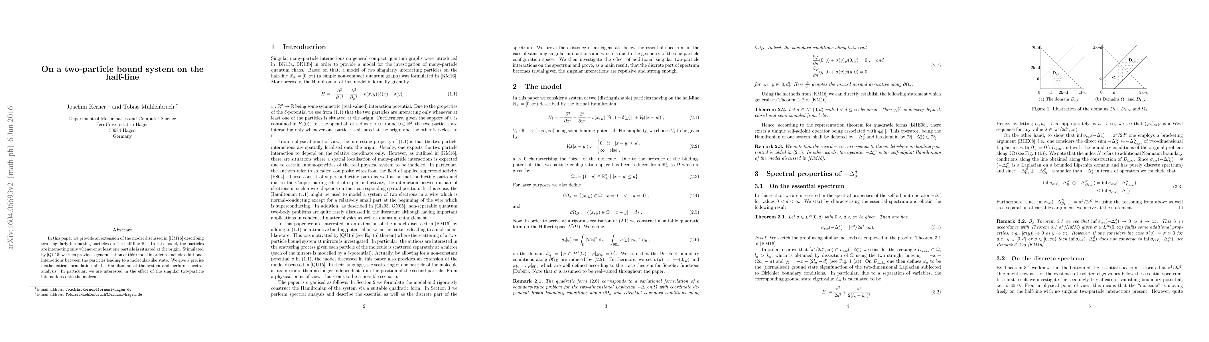 Researchers extended a model of two particles on the half-line with additional interactions between them, resulting in a molecular-like state, and performed spectral analysis to understand its effects.