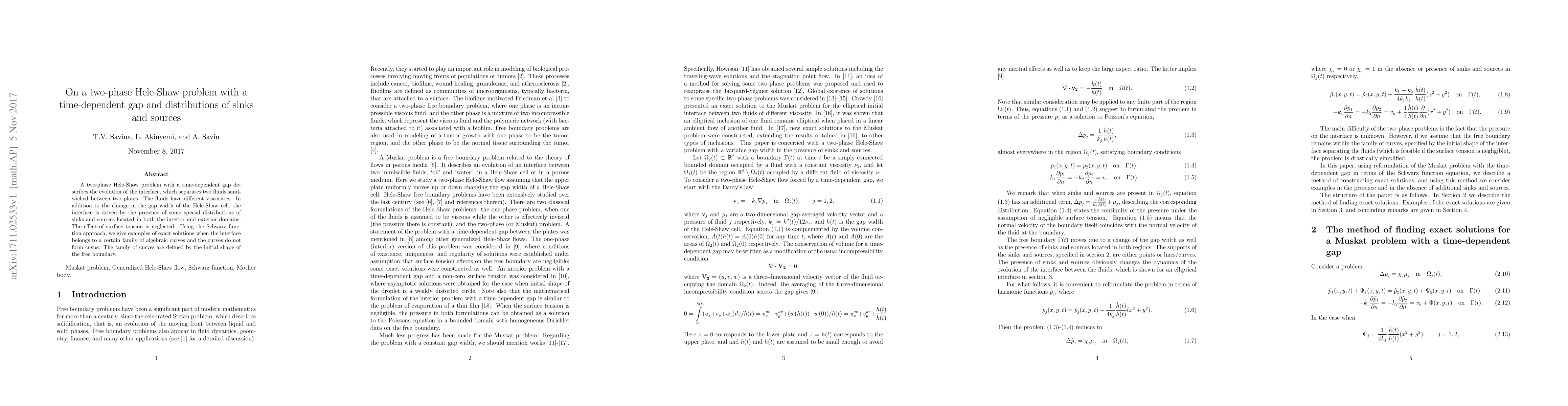 A two-phase Hele-Shaw problem with a time-dependent gap is solved using the Schwarz function approach, providing exact solutions for specific algebraic curves that don't form cusps, depending on the initial shape of the free boundary.