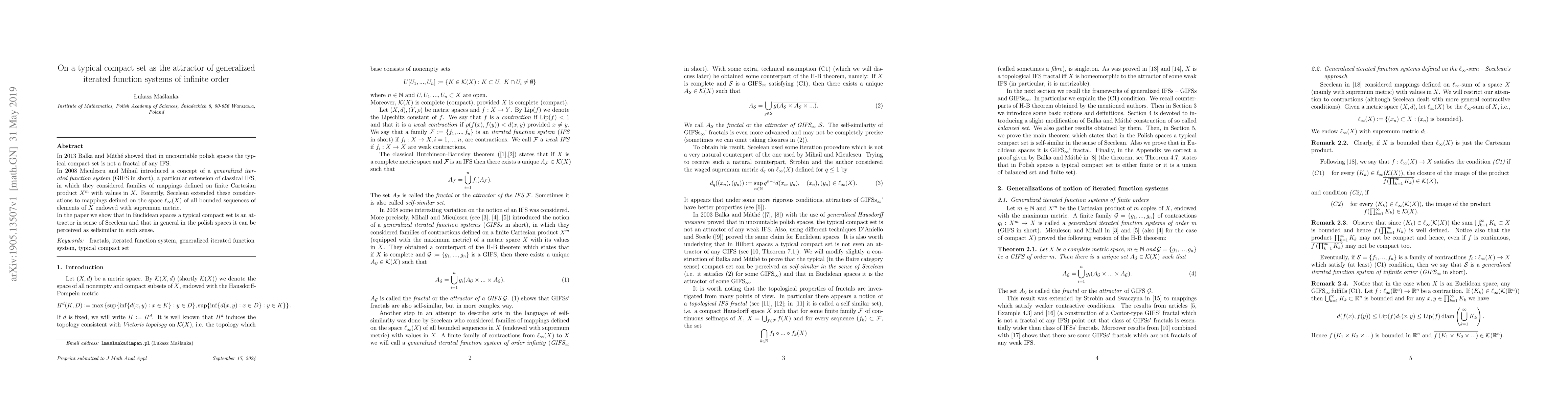 In 2013 Balka and M\'ath\'e showed that in uncountable polish spaces the typical compact set is not a fractal of any IFS. In 2008 Miculescu and Mihail introduced a concept of a generalized iterated function system (GIFS in short), a particular extension of classical IFS, in which they considered families of mappings defined on finite Cartesian product $X^m$ with values in $X$. Recently, Secelean extended these considerations to mappings defined on the space $\ell_\infty(X)$ of all bounded sequences of elements of $X$ endowed with supremum metric. In the paper we show that in Euclidean spaces a typical compact set is an attractor in sense of Secelean and that in general in the polish spaces it can be perceived as selfsimilar in such sense.