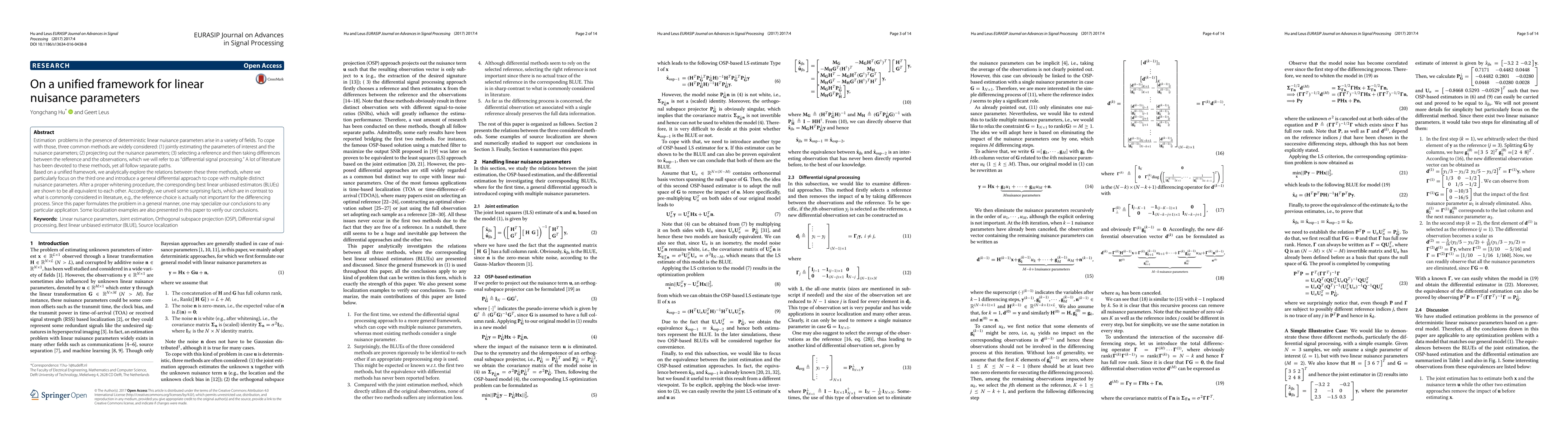 This paper presents a unified framework to analyze three common methods for estimating parameters in the presence of deterministic linear nuisance parameters, revealing their equivalence under a general differential approach. Contrary to common belief, it shows that the choice of reference in differential signal processing is not crucial.