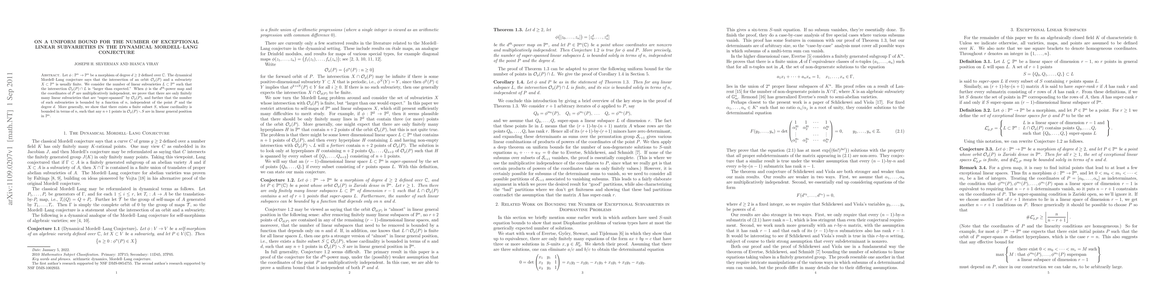 Researchers prove a uniform bound on the number of linear subvarieties in the dynamical Mordell-Lang conjecture, showing that only finitely many are 'super-spanned' by an orbit, independent of point P or degree d.