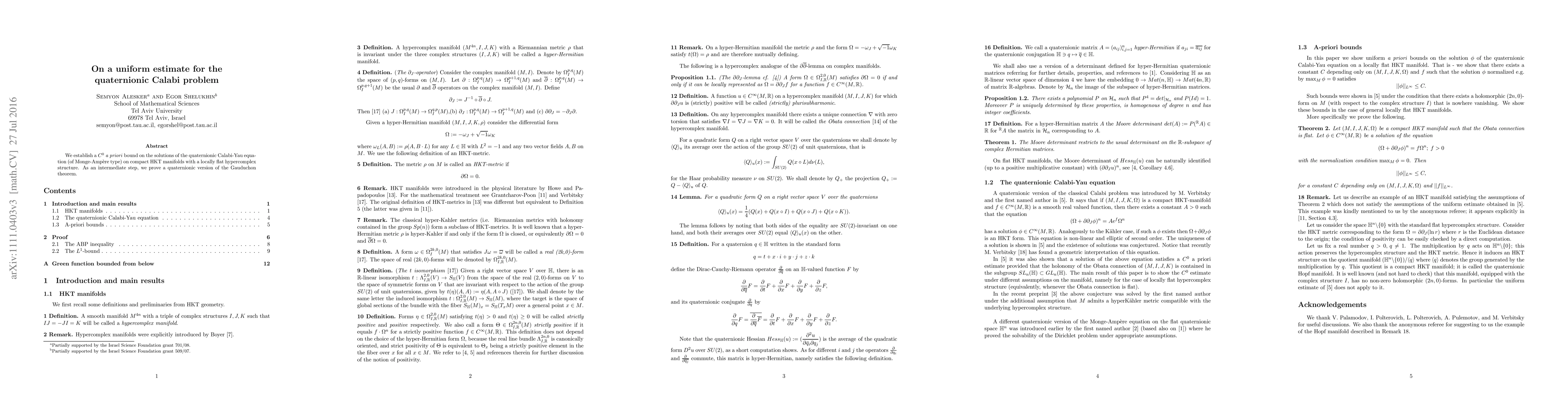 Summary: This paper establishes a uniform C^0 a priori bound for solutions of the quaternionic Calabi-Yau equation on compact HKT manifolds, leveraging a quaternionic version of the Gauduchon theorem as an intermediate step.