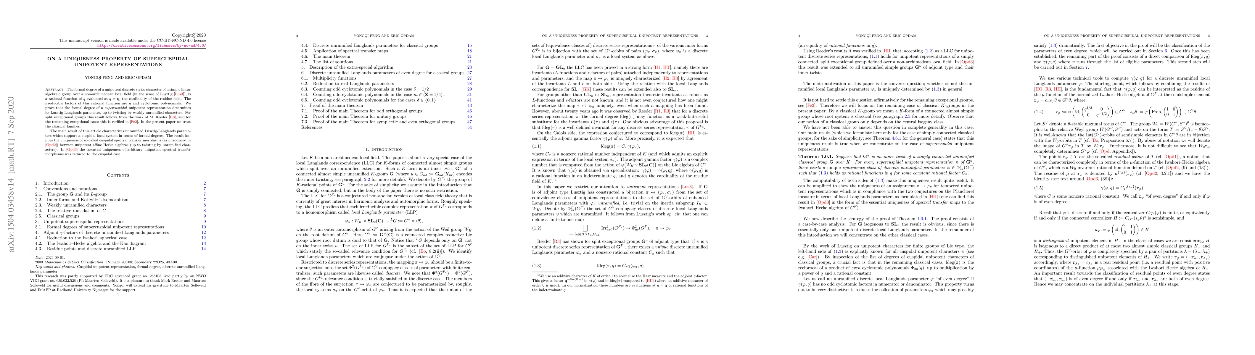 This paper establishes that the formal degree of supercuspidal unipotent representations uniquely determines their Lusztig-Langlands parameters up to twisting by weakly unramified characters, particularly for classical families. It characterizes unramified Lusztig-Langlands parameters supporting cuspidal local systems through formal degrees and implies the uniqueness of cuspidal spectral transfer morphisms.
