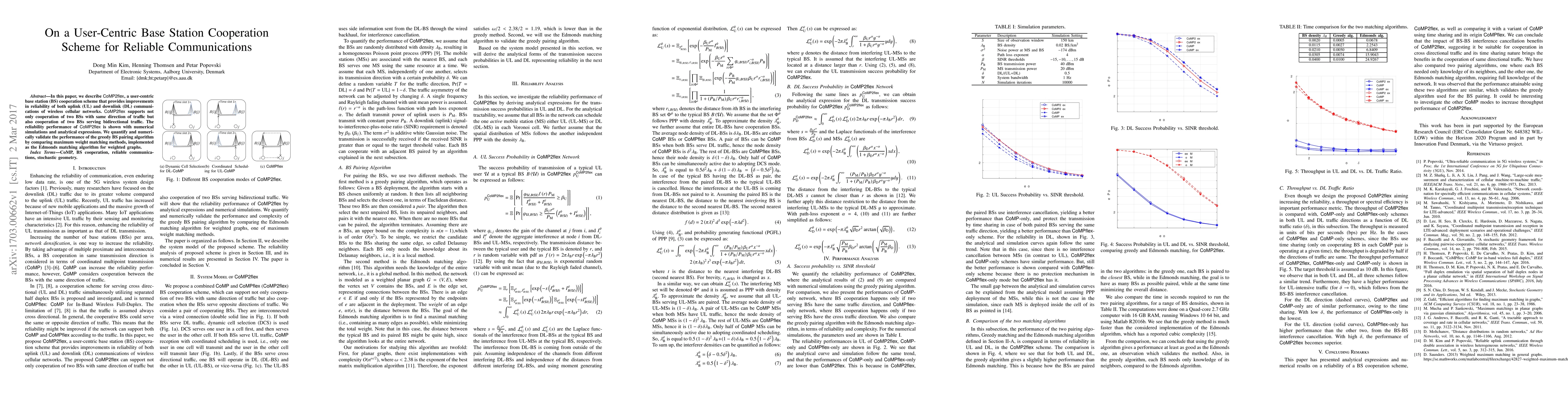 In this paper, we describe CoMP2flex, a user-centric base station (BS) cooperation scheme that provides improvements in reliability of both uplink (UL) and downlink (DL) communications of wireless cellular networks. CoMP2flex supports not only cooperation of two BSs with same direction of traffic but also cooperation of two BSs serving bidirectional traffic. The reliability performance of CoMP2flex is shown with numerical simulations and analytical expressions. We quantify and numerically validate the performance of the greedy BS pairing algorithm by comparing maximum weight matching methods, implemented as the Edmonds matching algorithm for weighted graphs.