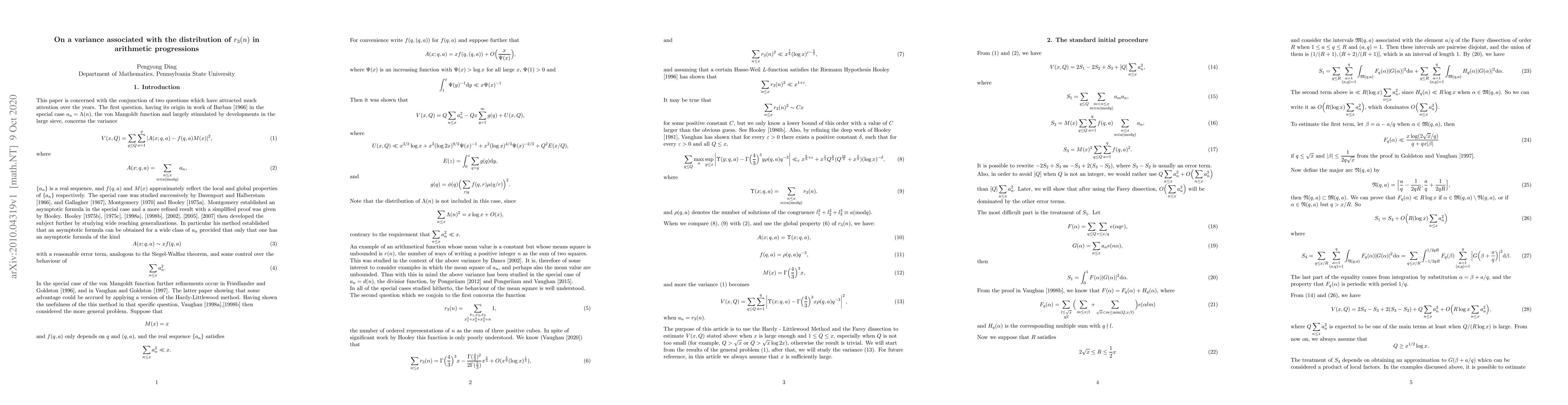 There are two questions in analytic number theory which have attracted much attention over the years. The first one is about the asymptotic formula for the variance associated with the distribution of a real sequence in arithmetic progressions, which origins in the work of Barban. The second one is about the function $r_3(n)$, the number of ordered representation of $n$ in the sum of three positive cubes, and several results are recently proved by Robert C. Vaughan. The paper is concerned with the conjunction of these questions, with the application of the Hardy-Littlewood Method and the Farey sequence.