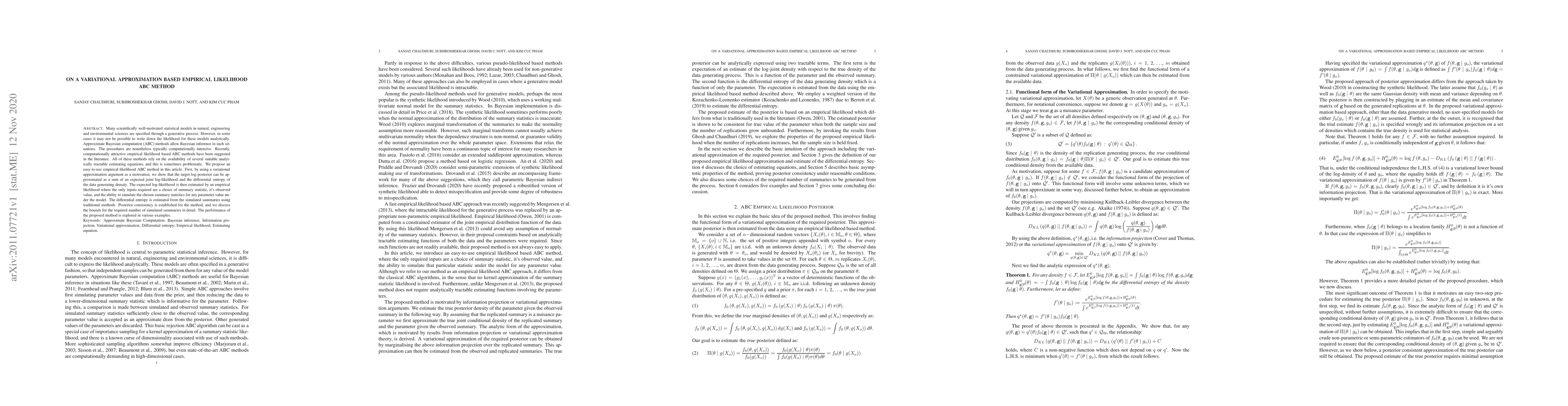 This paper proposes a computationally efficient empirical likelihood-based Approximate Bayesian Computation (ABC) method, motivated by variational approximation. It estimates the posterior using an empirical likelihood approach that requires only summary statistics and their simulated values, ensuring posterior consistency and exploring its performance through various examples.
