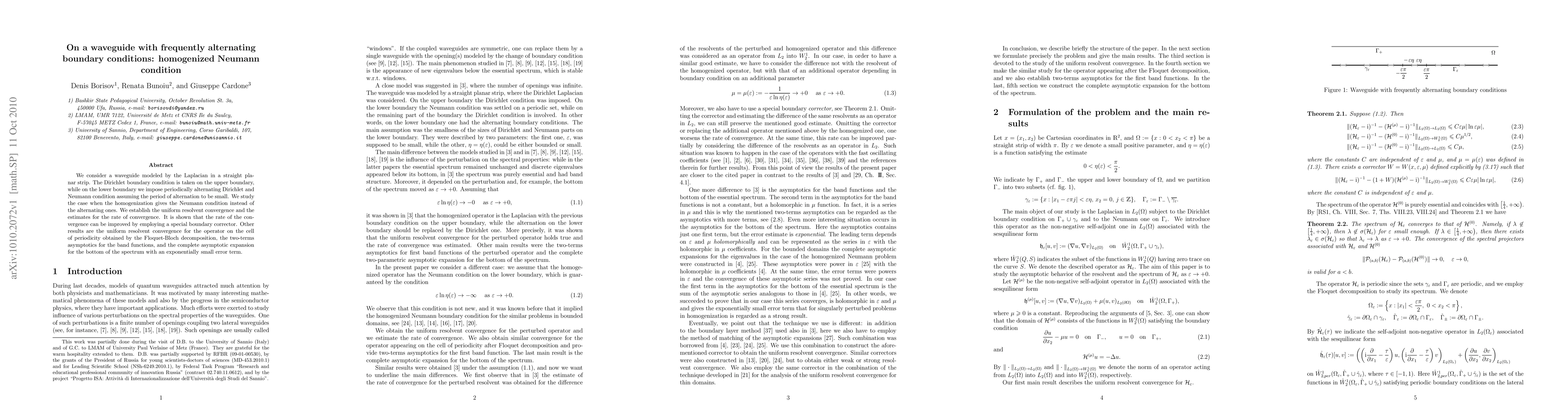This paper studies a waveguide with a Laplacian operator in a strip where the lower boundary alternates periodically between Dirichlet and Neumann conditions. It focuses on the homogenization process leading to a uniform Neumann condition and establishes uniform resolvent convergence and convergence rate estimates. Special boundary correctors are shown to improve convergence rates.