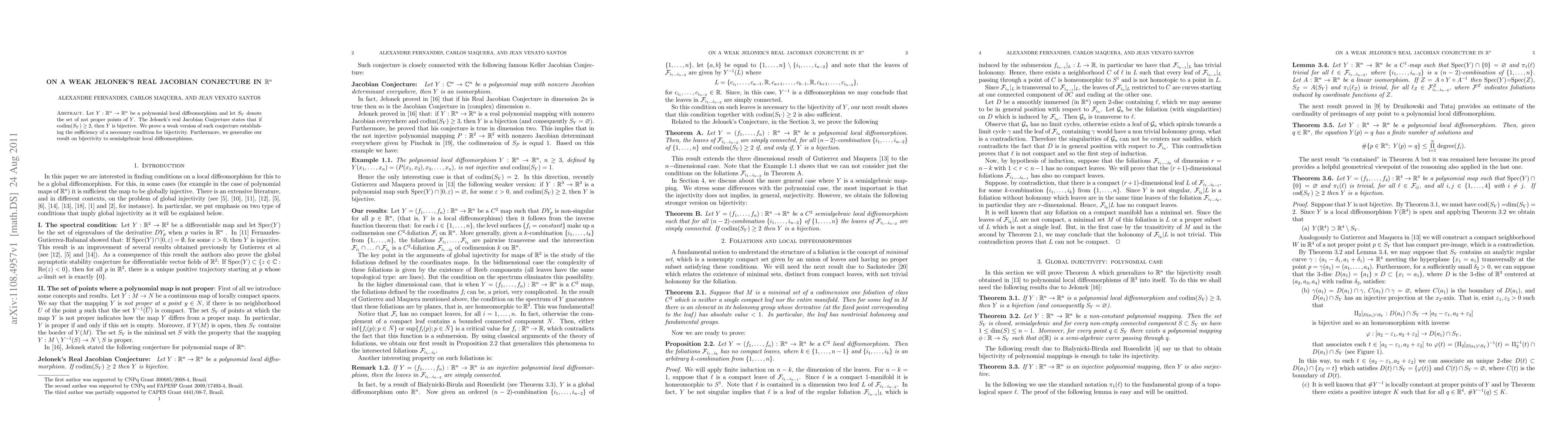 Let $Y:\R^n\to\R^n$ be a polynomial local diffeomorphism and let $S_Y$ denote the set of not proper points of $Y$. The Jelonek's real Jacobian Conjecture states that if $\codim(S_Y)\geq2$, then $Y$ is bijective. We prove a weak version of such conjecture establishing the sufficiency of a necessary condition for bijectivity. Furthermore, we generalize our result on bijectivity to semialgebraic local diffeomorphisms.