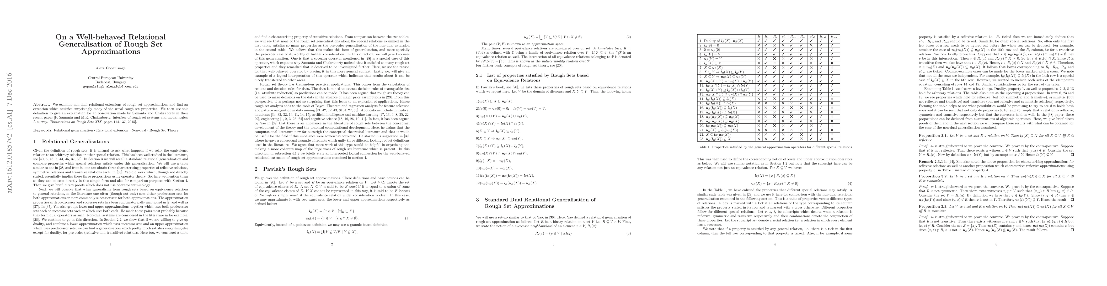 We examine non-dual relational extensions of rough set approximations and find an extension which satisfies surprisingly many of the usual rough set properties. We then use this definition to give an explanation for an observation made by Samanta and Chakraborty in their recent paper [P. Samanta and M.K. Chakraborty. Interface of rough set systems and modal logics: A survey. Transactions on Rough Sets XIX, pages 114-137, 2015].