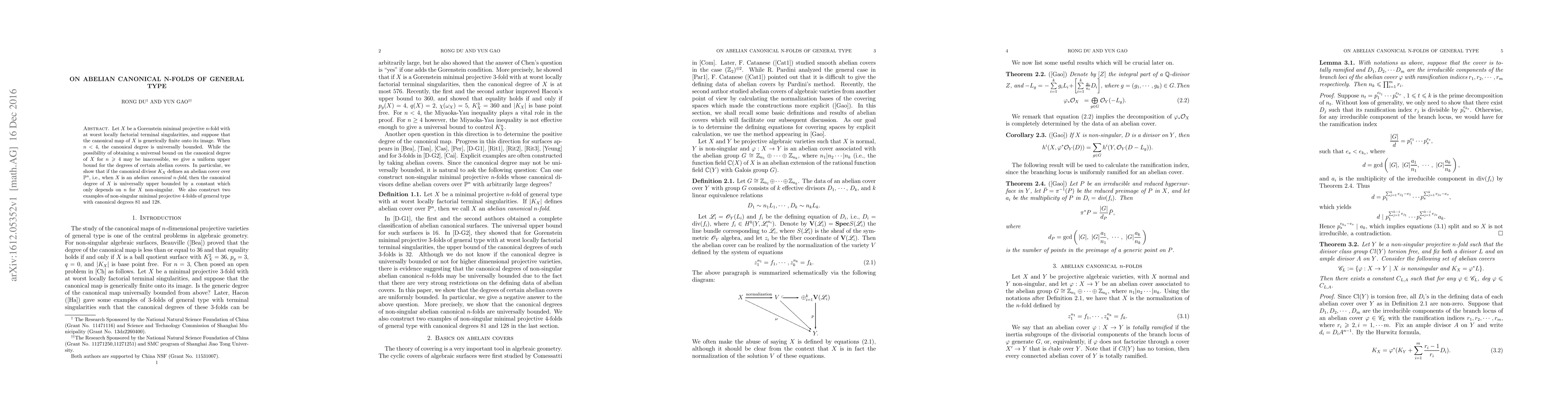 This research paper provides a uniform upper bound for the canonical degree of abelian canonical n-folds, showing that it is universally bounded by a constant depending on n for non-singular cases, and constructs examples of minimal projective 4-folds with high canonical degrees.