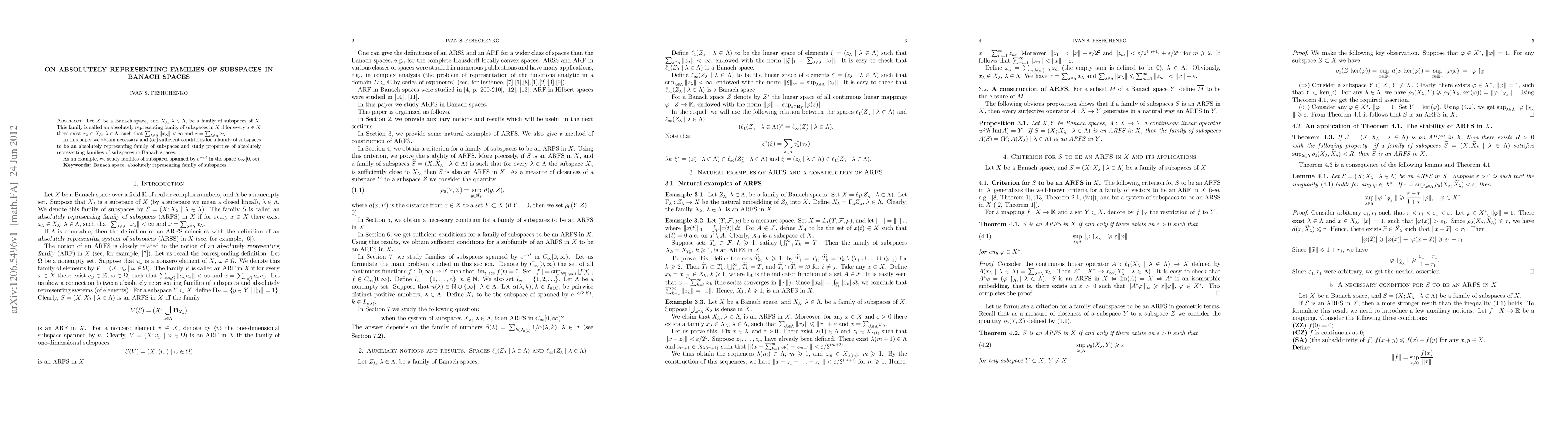 This paper explores the concept of absolutely representing families of subspaces in Banach spaces, providing necessary and sufficient conditions for such families, and investigates their properties, including an example of families spanned by exponents.