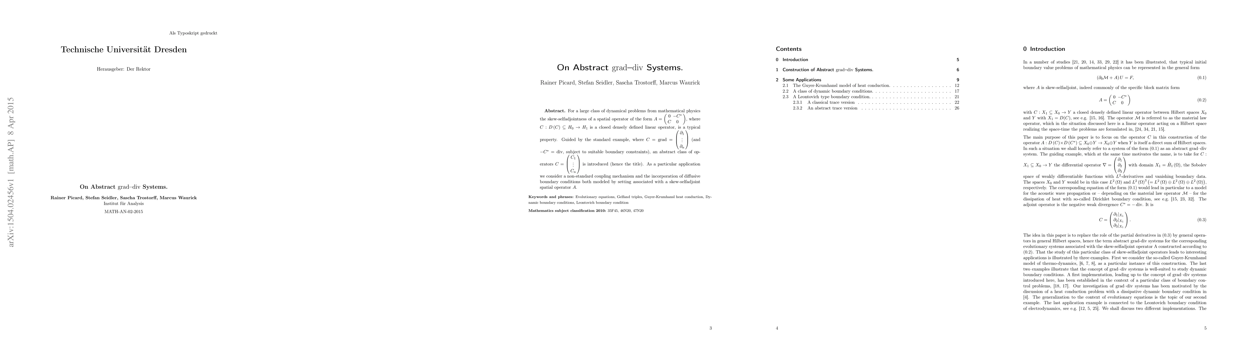 For a large class of dynamical problems from mathematical physics the skew-selfadjointness of a spatial operator of the form $A=\left(\begin{array}{cc} 0 & -C^{*}\\ C & 0 \end{array}\right)$, where $C:D\left(C\right)\subseteq H_{0}\to H_{1}$ is a closed densely defined linear operator, is a typical property. Guided by the standard example, where $C=\mathrm{grad}=\left(\begin{array}{c} \partial_{1}\\ \vdots\\ \partial_{n} \end{array}\right)$ (and $-C^{*}=\mathrm{div}$, subject to suitable boundary constraints), an abstract class of operators $C=\left(\begin{array}{c} C_{1}\\ \vdots\\ C_{n} \end{array}\right)$ is introduced (hence the title). As a particular application we consider a non-standard coupling mechanism and the incorporation of diffusive boundary conditions both modeled by setting associated with a skew-selfadjoint spatial operator $A$.