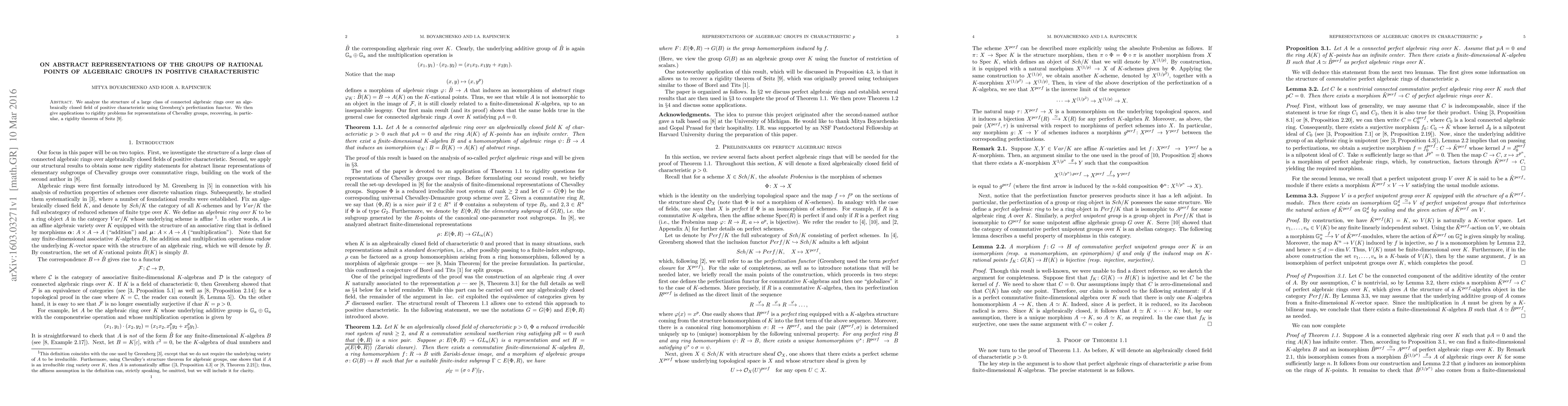 **Summary:** This paper investigates connected algebraic rings in positive characteristic via Greenberg's functor and applies these findings to solve rigidity problems for Chevalley group representations, notably reconfirming a theorem by Seitz.