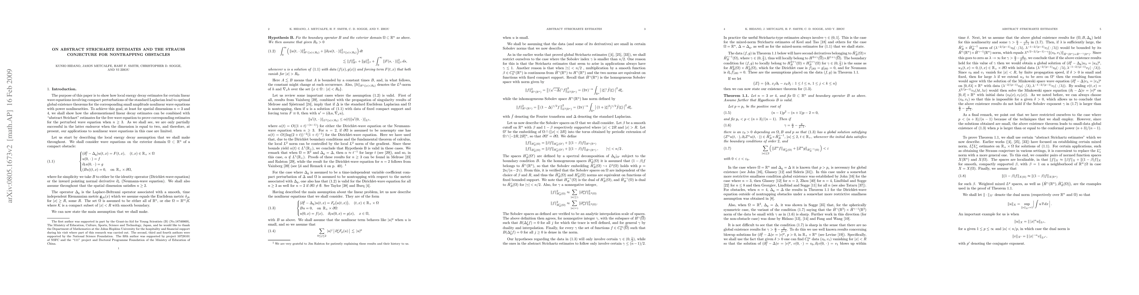 The purpose of this paper is to show how local energy decay estimates for certain linear wave equations involving compact perturbations of the standard Laplacian lead to optimal global existence theorems for the corresponding small amplitude nonlinear wave equations with power nonlinearities. To achieve this goal, at least for spatial dimensions $n=3$ and 4, we shall show how the aforementioned linear decay estimates can be combined with "abstract Strichartz" estimates for the free wave equation to prove corresponding estimates for the perturbed wave equation when $n\ge3$. As we shall see, we are only partially successful in the latter endeavor when the dimension is equal to two, and therefore, at present, our applications to nonlinear wave equations in this case are limited.