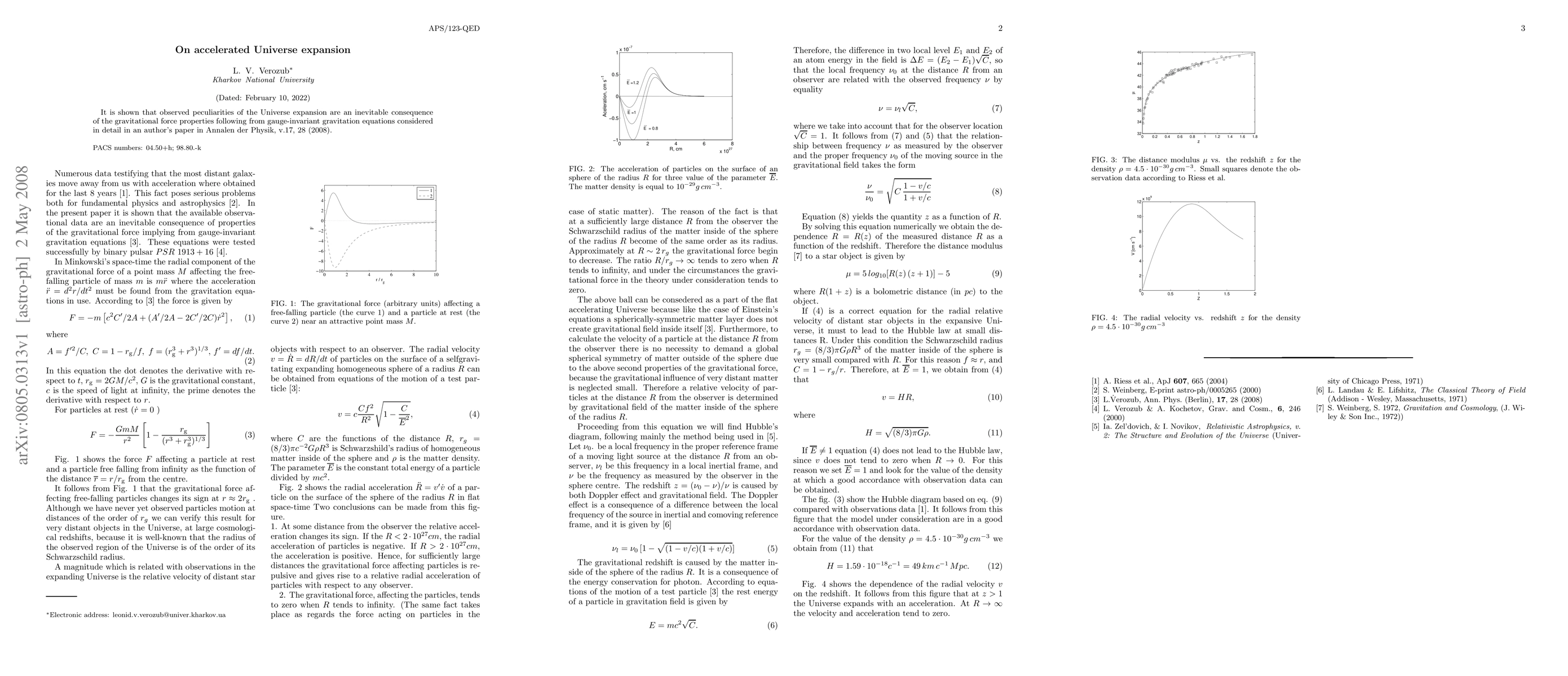 It is shown that observed peculiarities of the Universe expansion are an inevitable consequence of the gravitational force properties following from gauge-invariant gravitation equations considered in detail in an author's paper in Annalen der Physik, v.17, 28 (2008).