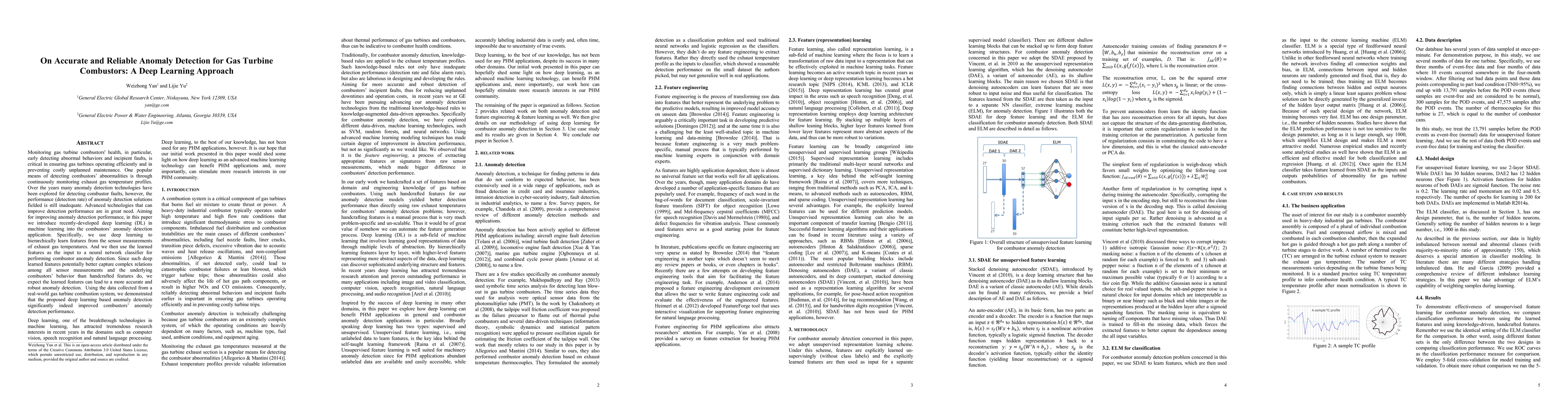 This paper proposes a deep learning approach to enhance the detection of anomalies in gas turbine combustors by leveraging hierarchical feature learning from exhaust gas temperature profiles. The deep learning method significantly improves anomaly detection performance compared to traditional methods, as demonstrated using real-world data.