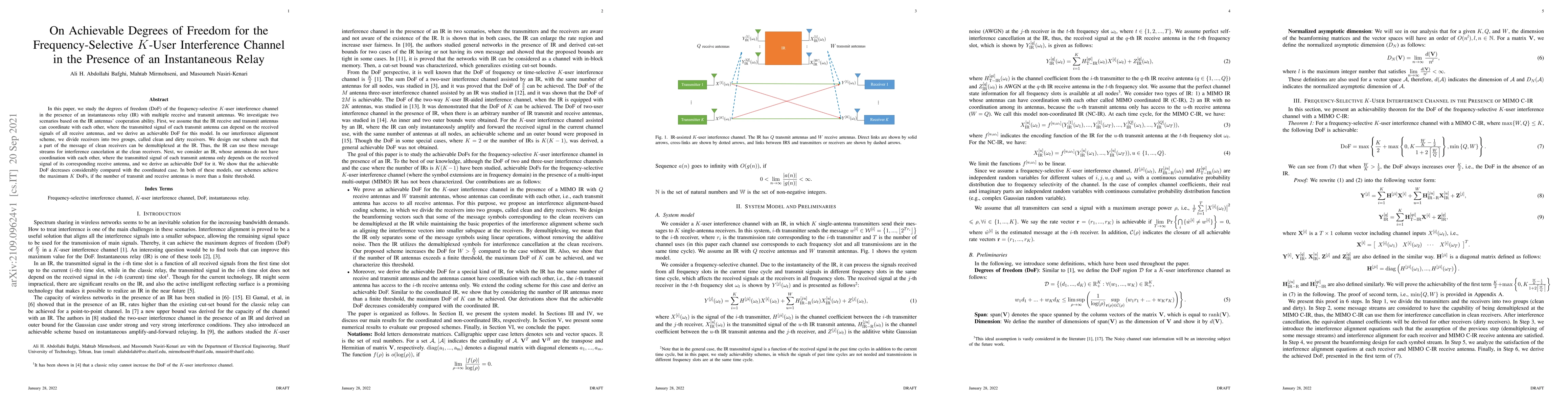 This paper investigates the degrees of freedom (DoF) for a frequency-selective K-user interference channel with an instantaneous relay (IR) having multiple antennas. It derives achievable DoF for two relay scenarios: one where IR antennas can coordinate, and another where they cannot, showing that coordination significantly enhances DoF.