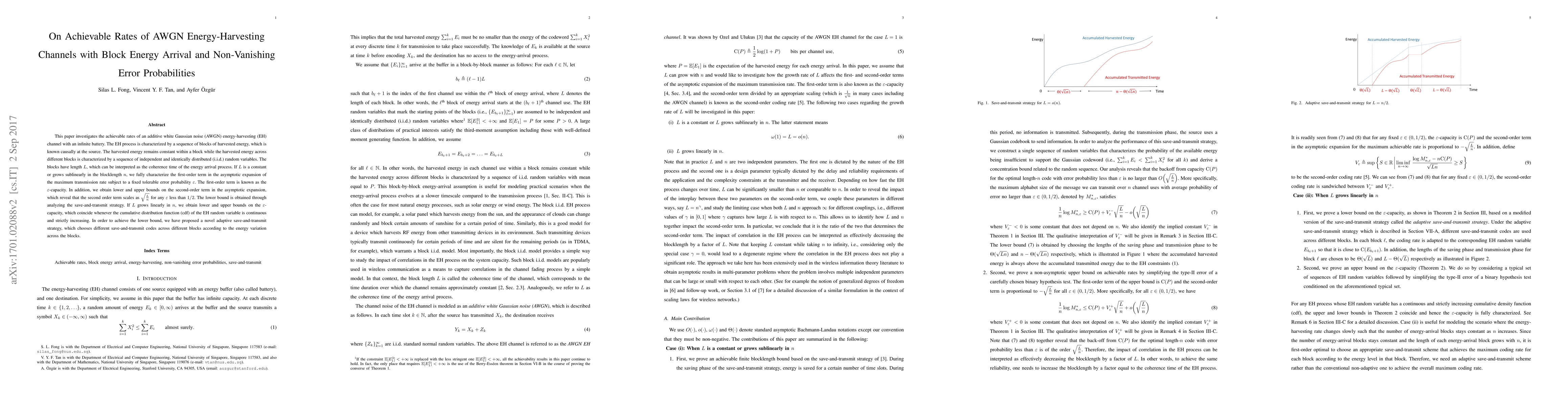 This paper investigates the achievable rates of an additive white Gaussian noise (AWGN) energy-harvesting (EH) channel with an infinite battery. The EH process is characterized by a sequence of blocks of harvested energy, which is known causally at the source. The harvested energy remains constant within a block while the harvested energy across different blocks is characterized by a sequence of independent and identically distributed (i.i.d.) random variables. The blocks have length $L$, which can be interpreted as the coherence time of the energy arrival process. If $L$ is a constant or grows sublinearly in the blocklength $n$, we fully characterize the first-order term in the asymptotic expansion of the maximum transmission rate subject to a fixed tolerable error probability $\varepsilon$. The first-order term is known as the $\varepsilon$-capacity. In addition, we obtain lower and upper bounds on the second-order term in the asymptotic expansion, which reveal that the second order term scales as $\sqrt{\frac{L}{n}}$ for any $\varepsilon$ less than $1/2$. The lower bound is obtained through analyzing the save-and-transmit strategy. If $L$ grows linearly in $n$, we obtain lower and upper bounds on the $\varepsilon$-capacity, which coincide whenever the cumulative distribution function (cdf) of the EH random variable is continuous and strictly increasing. In order to achieve the lower bound, we have proposed a novel adaptive save-and-transmit strategy, which chooses different save-and-transmit codes across different blocks according to the energy variation across the blocks.