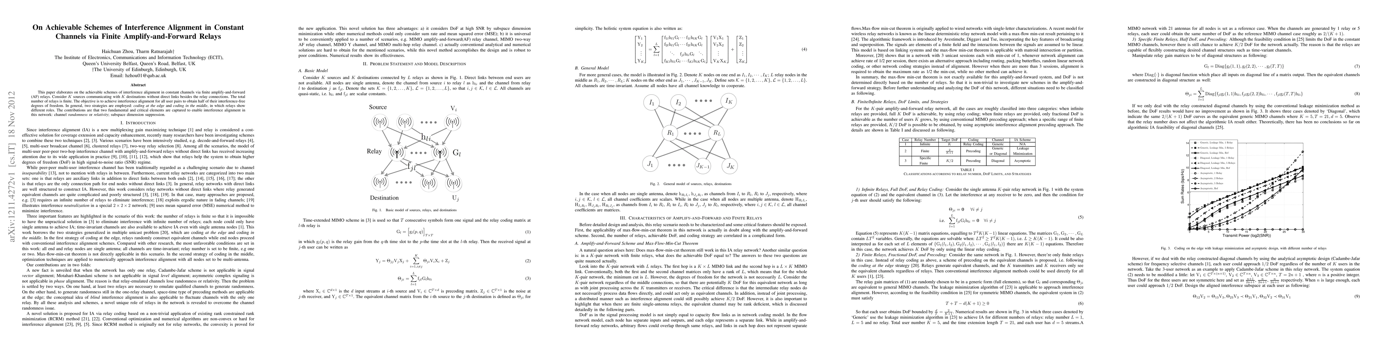 This paper explores interference alignment in constant channels using finite amplify-and-forward relays, focusing on achieving half of the interference-free degrees of freedom for $K$ source-destination pairs. Two strategies are presented: coding at the edge and coding in the middle, highlighting the distinct roles of relays. The study captures channel randomness and subspace dimension suppression as key elements for successful alignment.
